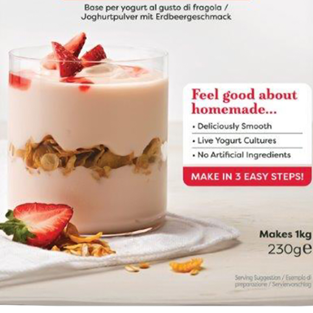 Make fresh yogurt at home with EasiYo Strawberry Yogurt. Feel good about homemade with EasiYo. EasiYo yogurts have no artificial colours, stabilisers or preservatives. Made fresh by you, it's packed with over a billion live cultures in every serving from day one! Packed with billions of live cultures in every spoonful, this yogurt is not only indulgent but is good for you too. Easy to make. Size: 230g.