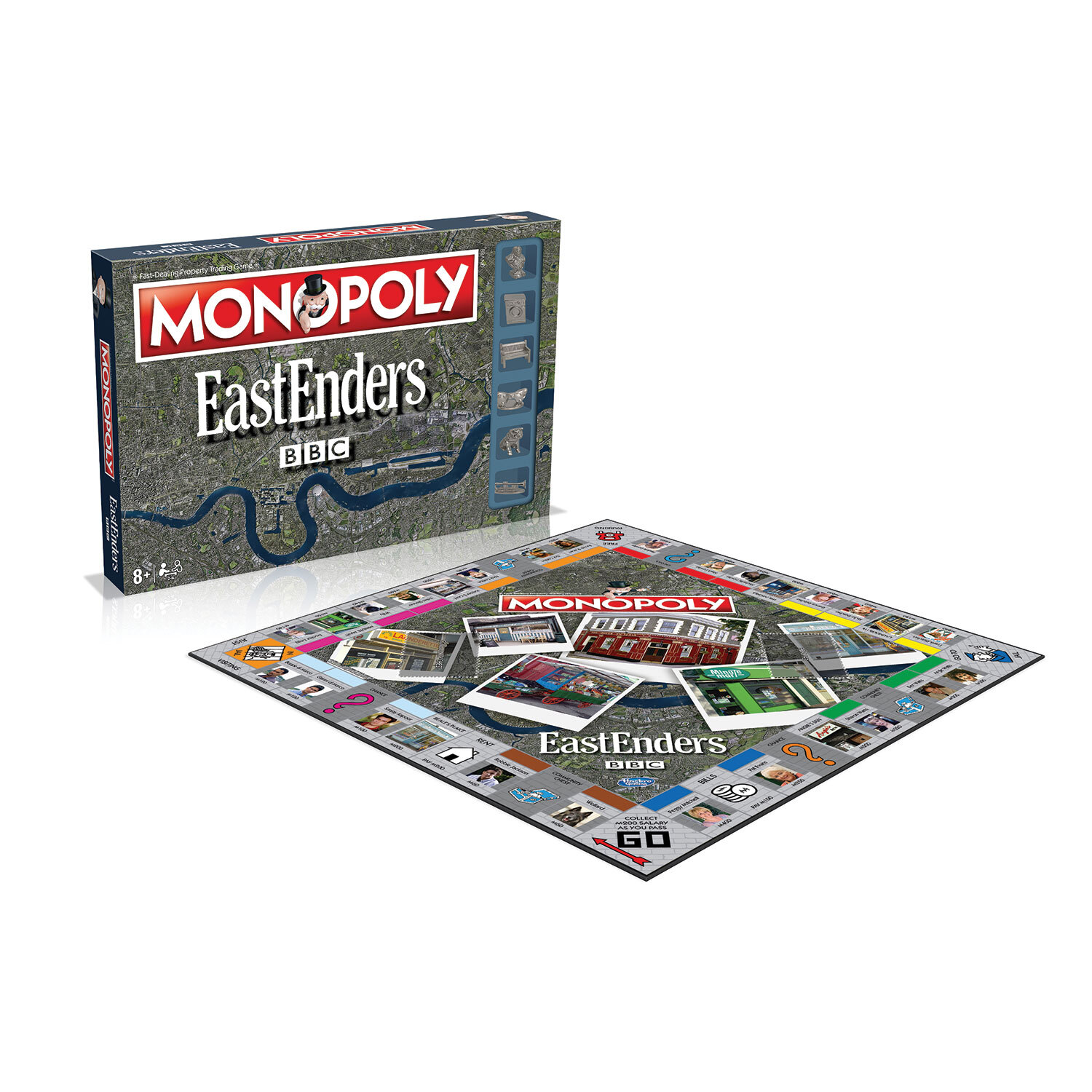 The world's favourite family board game brings you the exciting EastEnders Monopoly. Choose your favourite bespoke token from Arthur's bench to Frank Butcher's bow tie, take a trip around the board to discover which classic characters are featured, including Beppe Di Marco, Doctor Legg and even Wellard! But watch out for taxes, jail and bankruptcy. Advance to Michelle Fowler or even take a trip to Beales' Plaice - will you owe rent or reap the rewards? Invest in market stalls and Queen Vic pubs and trade your way to success.