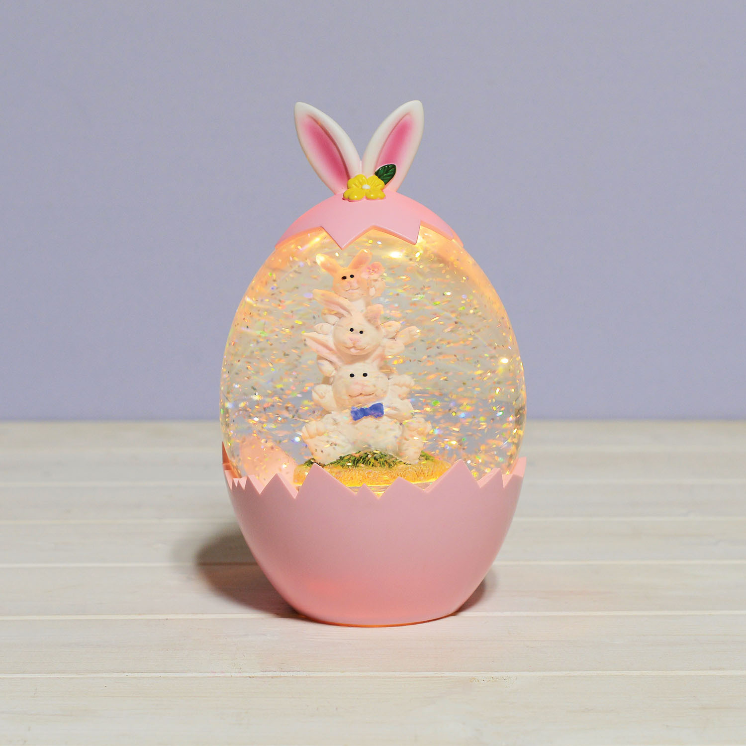 Add a cheerful touch to your Easter decor with this enchanting Easter Bunny Spinner Light. Featuring an adorable bunny design with vibrant pink ears, it brings a whimsical flair to any space. Watch as the glitter swirls and the warm white glow brightens your shelves and tables, creating a charming atmosphere.