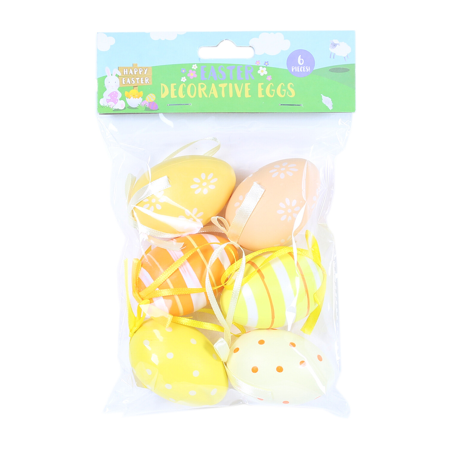 Decorate your home in style this spring with this Pack of Six Easter Decorative Eggs. Available in an assortment of four colours, all featuring sweet patterns and a helpful ribbon. Perfect for hanging around the house and adding to Easter crafts.