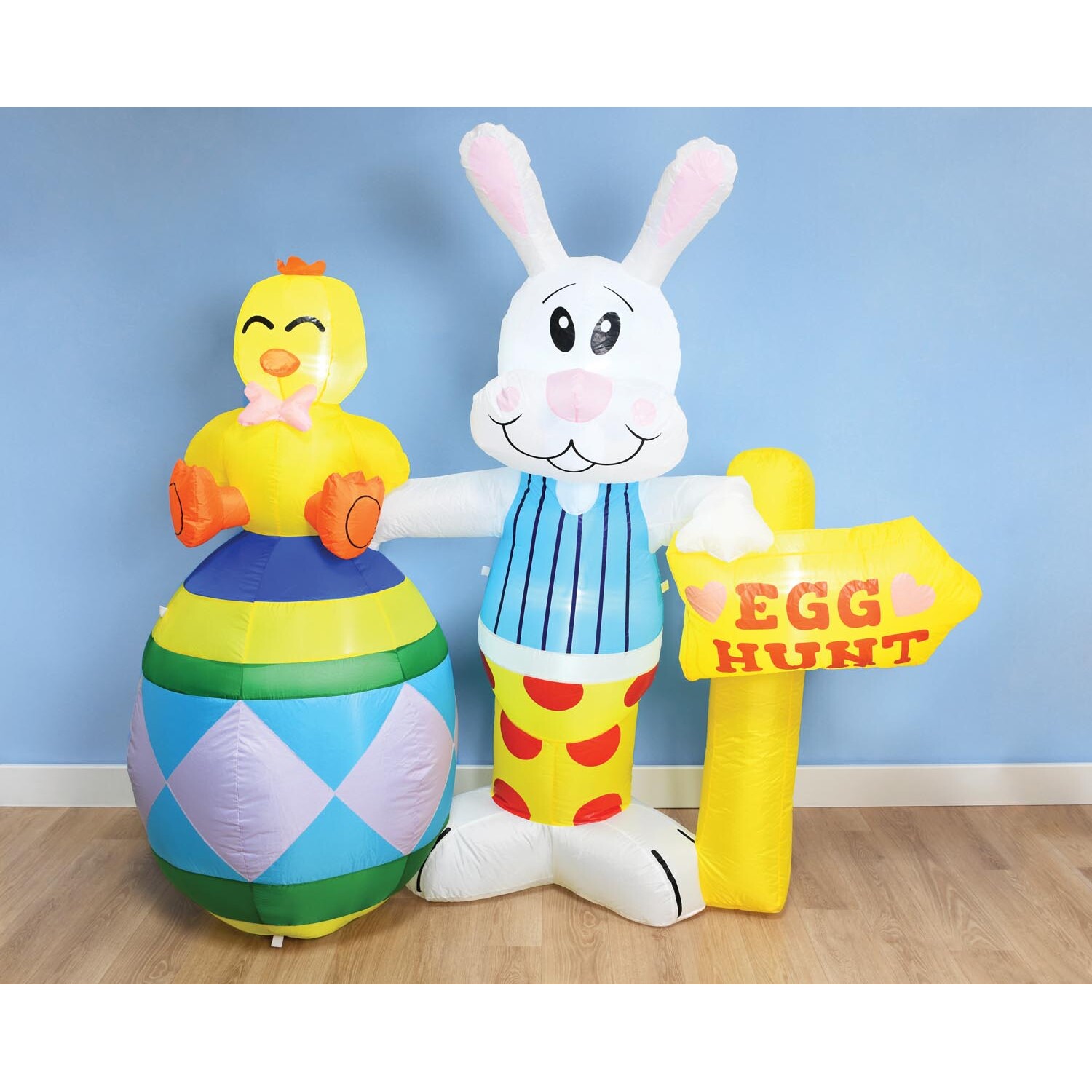 This Easter Egg Hunt Inflatable decoration is perfect for adding some fun and whimsy to your Easter celebrations. The large inflatable features a cute design with an Easter bunny, chick and egg, along with an egg hunt sign. The bright and colourful design is sure to catch the eye of anyone passing by, making it a great way to show off your Easter spirit. Whether you're hosting an Easter egg hunt or just want to spruce up your garden, this inflatable is sure to impress.