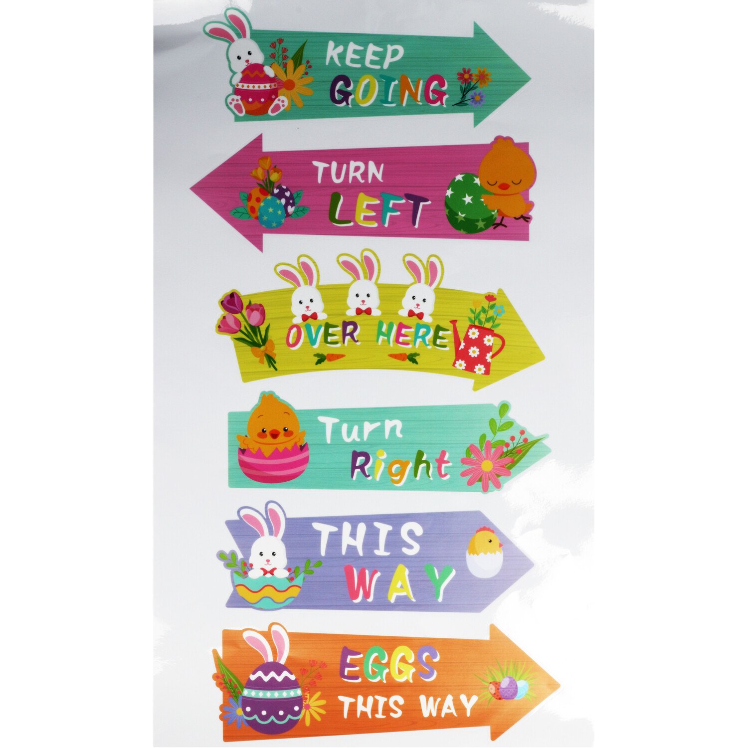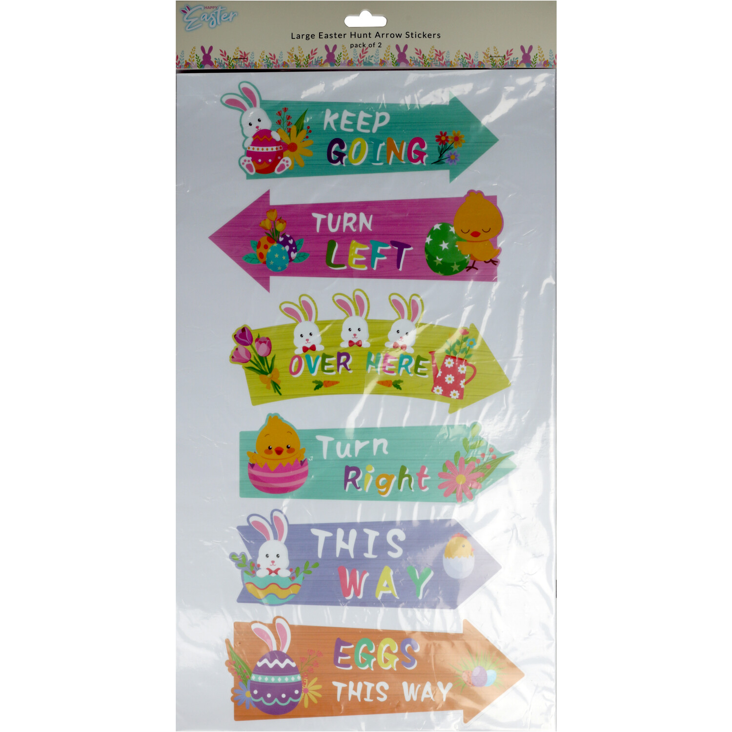 Bright and fun, the Easter Large Hunt Arrow Stickers feature an adorable Easter-themed design to enhance your festive decorations. Place them around your home to guide friends and family toward the hidden Easter eggs.