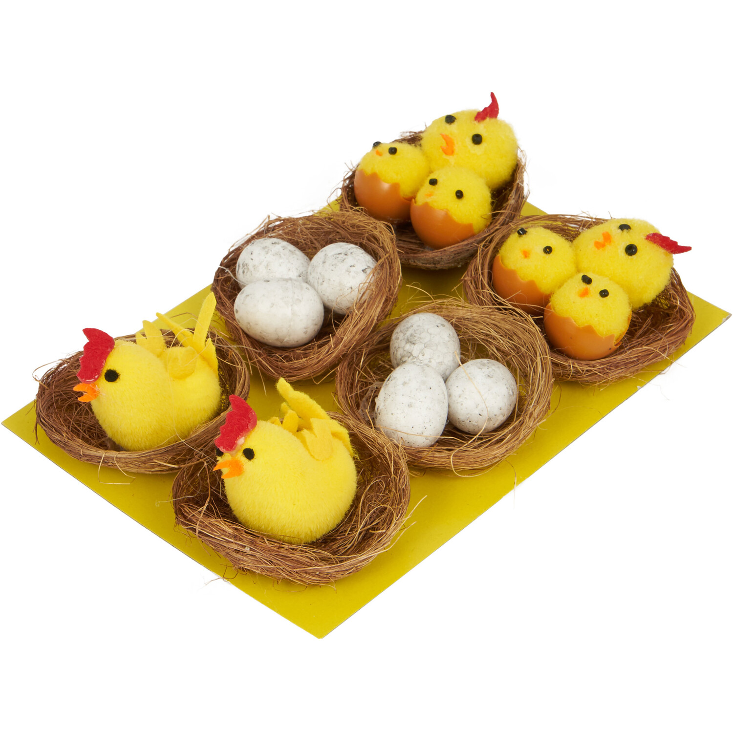 This pack of six Easter Nests are perfect for various fun Easter-time crafting projects. With six individual straw nests containing assorted mini-speckled eggs, chickens and chicks, these decorative items are ideal for adding to bonnets, baskets, hats and much more. These adorable decorations are perfect for celebrating the arrival of spring in style.