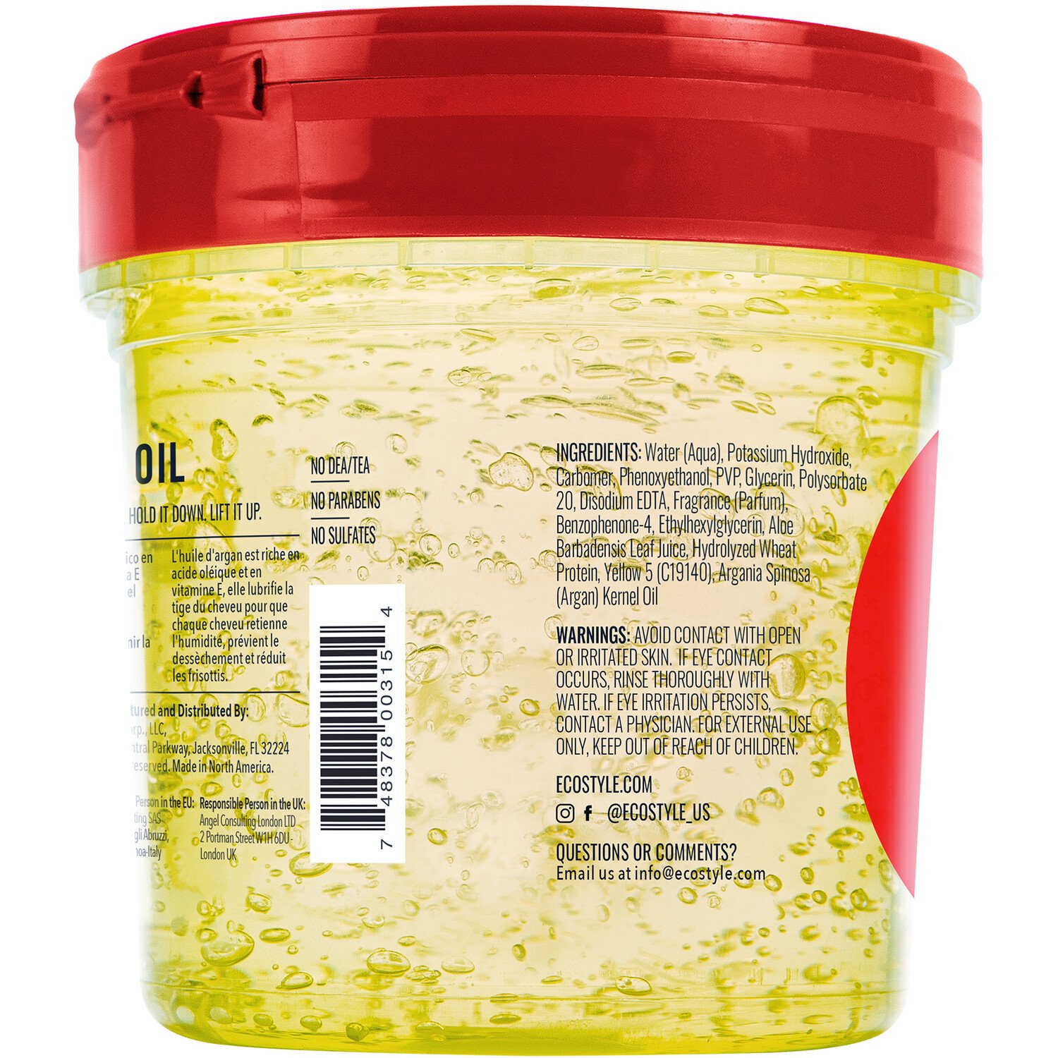 Condition and revitalise your hair with the max hold Argan Oil Styling Gel. This lightweight gel contains natural argan oil to nourish your hair, control frizz, and add shine. It has an alcohol-free formula and helps to keep your hair in place and looking stylish. It's suitable for all hair types and can be used for convenience on wet and dry hair.