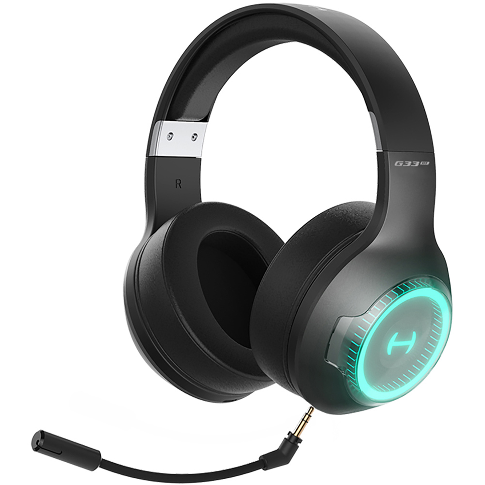 The G33BT is a fantastic Bluetooth headset with low latency and RGB backlight technology. Featuring soft leatherette ear pads and a self-adjusting dual suspension headband for optimal comfort during long gaming sessions. Quickly and conveniently make adjustments and change settings by tapping on the smart buttons located on the headset. It is now easier to control sound volume, answer calls and turn on the RGB lights. The G33BT also features a detachable omni-directional noise cancelling microphone which can be conveniently detached when not in use. The G33BT can deliver accurate tuned sound thanks to the 40mm NdFeB unit with a PET diaphragm. The headset applies PixArt technology that can reach a low 60ms latency level. The chip also integrates with Bluetooth V5.0 for both iOS and Android systems. Eight different RBG light modes are available for you to select, simply tap the function button to turn on your preferred lighting (constant, breathing and gradient). Audio inputs can be connected either via Bluetooth or via AUX and the headset is charged via the Type C USB port (charging cable supplied). Features Lightweight design with soft leatherette ear pads for all-day comfort, Equipped with gaming and music sound effects and professional tuning to fit various scenarios, PixArt Bluetooth V5.0 with latency as low as 60ms, compatible with Android and iOS, Up to 24 hours battery life per charge, Gradually varied colours based on RGB dynamic backlight technology, 40mm NdFeB drivers deliver crystal-clear sound and solid bass, 6mm detachable and flexible omnidirectional noise cancelling microphone. Specifications: Bluetooth version: V5.0, Audio codec: SBC, Playback time: about 24 hours (light on)/about 48 hours (light off), Charging time: about 2 hours, Battery capacity: 750mAh, Frequency response: 20Hz-20kHz, Impedance: 32O, Sensitivity: 100dB, Audio inputs; Bluetooth/AUX, Charging port: USB Type-C.