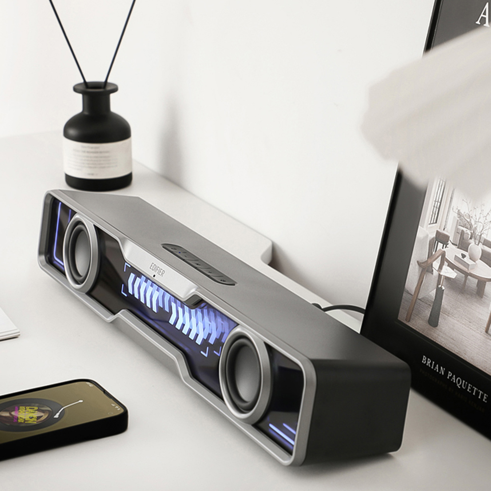 The Edifier QS30 soundbar is a sophisticated audio solution designed to elevate your listening experience with its innovative acoustic architecture, which features two independent cavities that house dual 2" full-range drivers, delivering a total output power of 5W (RMS). This soundbar is engineered with two symmetric bass reflex channels that significantly enhance bass response, allowing for dynamic rhythms that bring your music, movies, and games to life. The thoughtfully designed silicone footpads slightly tilt the baffle, ensuring that sound waves are directed to ear level when positioned under your computer screen, optimizing audio clarity and immersion. Connectivity is seamless with the Edifier QS30, as it comes equipped with an attached USB cable that transmits both power and audio signals directly from your computer, allowing for a straightforward plug-and-play experience. Additionally, the soundbar features Bluetooth V5.4 technology, which supports stable audio streaming, enabling you to enjoy your favourite tracks wirelessly without compromising sound quality. A standout feature of the QS30 is its patented TempoAbyss technology, which not only enhances audio performance but also creates stunning visual effects. The baffle showcases mesmerizing light effects that resemble cascading ribbons of light, with seven preset options available at the touch of a button on the top panel. For those who desire a more personalized experience, the accompanying mobile and computer apps allow users to customize millions of light effects, adding a unique touch to any setting. The Edifier QS30 is also equipped with a high-sensitivity MEMS microphone, which is enhanced by an intelligent noise cancellation algorithm, ensuring that voices are crystal clear during calls. This feature makes it an excellent choice for both personal and professional use, allowing for effective communication without background distractions. To further enhance your audio experience, the soundbar offers three preset sound effects tailored for music, movies, and gaming, allowing users to select their preferred audio profile effortlessly through the app. Playback control is made convenient with top-mounted buttons, ensuring that adjusting volume or switching tracks is both intuitive and accessible, making the Edifier QS30 a versatile addition to any audio setup. Features USB cable transmits both power and audio, RGB lighting, Bluetooth V5.4, Built-in high-sensitivity microphone, Dual 2" full-range drivers, and Multiple preset sound effects for music, movies, and gaming. Specifications: Total Output Power (RMS): 2.5W + 2.5W, Driver Units: 2-inch (52mm) full-range, Frequency Response: 90Hz-18kHz, Signal-to-Noise Ratio: = 85dB(A), Audio Inputs: Bluetooth, USB-A, lnput Sensitivity: Bluetooth: 800±50mFFS, USB-A: 800±50mFFS, Bluetooth Version: V5.4, Codecs: SBC, Dimensions (W x H x D): 428.7mm x 77.2mm x 89mm.