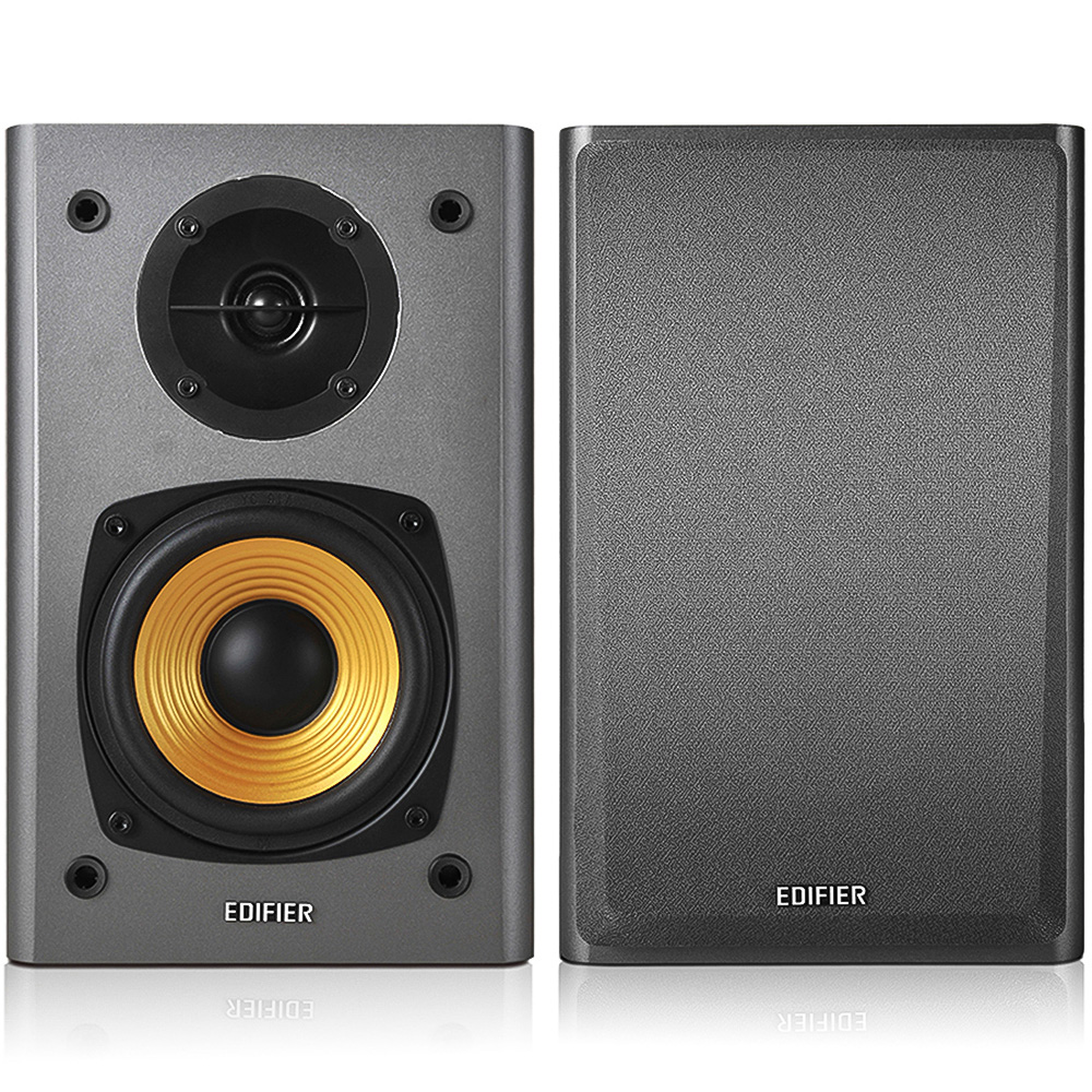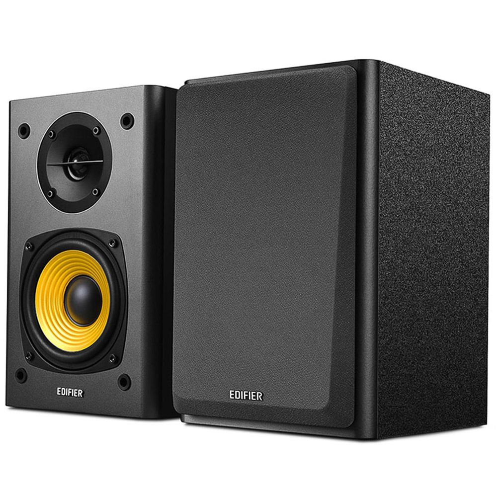 Totally re-engineered, this 4th generation of the legendary R1000T series has been released to incorporate up-to-date features such as our enhanced Class-D core amplifier with built-in DRC controller, automatic switching power board, efficient SMD manufacturing, the next generation of 3/4 inch natural silk dome tweeter drivers, and so on. They also inherit classical features of the R1000 such as Dual-Stereo RCA input, spring clip connection and backward bass reflector. Housed in 100% medium-density fibreboard (MDF), these bookshelf speakers are built to resist resonance. While the finish complements any surroundings in the home or the office. Featuring 4” bass drivers and ¾” silk-diaphragm tweeter drivers the R1000T4 bookshelf speakers are engineered to deliver impressive sound. featuring a pair of golden bass drivers that add a splash of colour to your everyday sound. For a personalised listening experience, you’ll find the bass and volume adjustment dials at the back of this bookshelf speaker. The R1000T4 also features dual stereo line-in ports, with dynamic treble enhancement on port A. Features Active bookshelf speaker system with 24W total power output, 100% MDF wooden enclosures, 4-inch bass driver and 1/2 inch silk diaphragm tweeter driver, Master volume and super bass controls on the active speaker, Versatile connectors for easier cable replacement/extensions. Specifications: Total power output: RMS 12W × 2 (DRC ON), Signal to noise ratio: =85 dBA, Amplifier distortion: =0.5%, Input sensitivity: PC: 700mV ± 50mV, AUX: 550mV ± 50mV, Frequency response: 75Hz ~ 18KHz (+/-9dB), Bass driver: 4 inch (116mm), Treble driver: ½ inch (13mm), Speaker Dimensions: 233 x 150 x 180 mm.