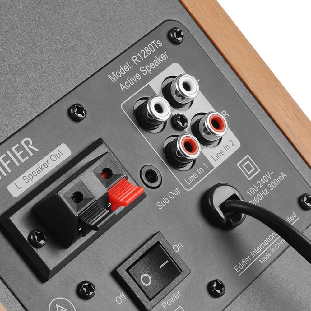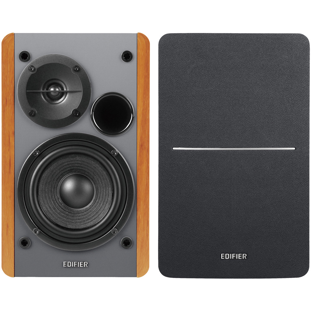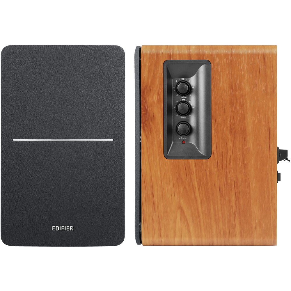 42W RMS undistorted power, 4-inch bass driver, and ½ inch silk dome tweeter produce a solid studio-quality sound that is ideal for gaming, movies, and music. Connect to your computer, home theatre, and more. Soundfield Spatializer simulates a larger soundstage with the touch of a button. This unique feature creates wide-filed sound by optimizing each channel, sending out opposite signals to eliminate mutual interference and improve separation. Convenient dials on the side panel of the speaker allow you to adjust the bass, treble, and volume. Adjust volume, mute/unmute, and select sound field extension with the wireless remote, no need to leave the couch. When connected the sub-out automatically detects the subwoofer (not supplied) and activates the digital crossover. Dual RCA inputs allow you to connect to two devices at a time. Connect to your devices such as phone, PC, laptop, tablet, or gaming console with RCA to RCA audio cable, and 3.5 mm-RCA audio cable, eliminating the need to switch cables. These outstanding speakers are made from MDF wood with a walnut finish-vinyl, designed to prevent resonance. A great addition to your living room, office, or study. Features Wooden enclosure isolates acoustic resonance and creates a classic look, Dual RCA inputs for connecting to two devices simultaneously, Studio tuned sound reproduced from silk dome tweeter and 4-inch bass driver, 42 watts RMS total power for distortion-free listening, Side panel control and wireless remote included, Front-facing bass reflex port for punchy bass, Sub-out output works with external subwoofer. Specifications: RMS: R/L: 21W+21W, Driver Unit: F13mm tweeter unit + 4-inch mid-woofer, Signal Noise Ratio: =85dB(A), Frequency Response: 52Hz-20KHz, Input Sensitivity: LINE IN 1: 500mV±50mV, LINE IN 2: 700mV±50mV, Input Interface: LINE IN 1, LINE IN 2, Speaker Dimensions: 234 x 146 x 196 mm.