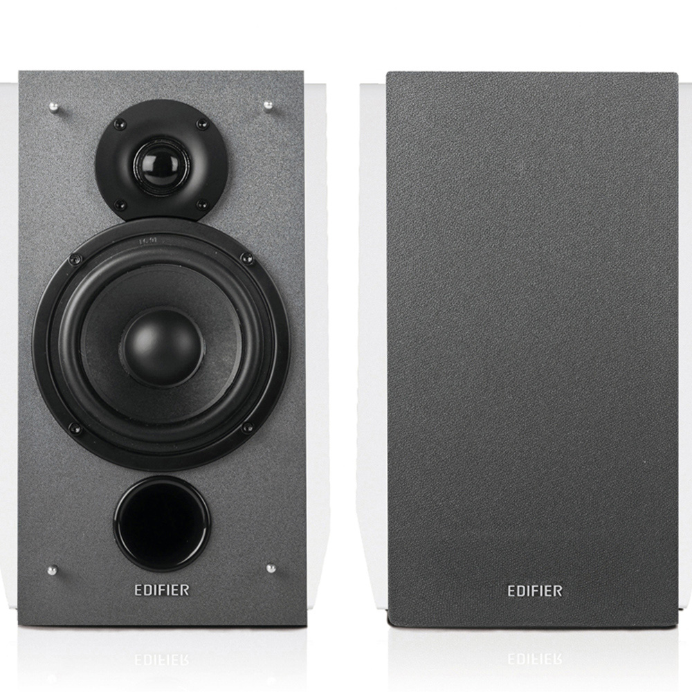 The Edifier R1700BT bookshelf speakers are a powerful audio solution with 4 driver units that can deliver an impressive 66 watts (RMS) output power, ensuring that your room is filled with your favourite music in high quality. Featuring a high-performance Class-D amplifier system with Digital Signal Processing (DSP) and Dynamic Range Control (DRC), these speakers are finely tuned to provide exceptional sound quality. The two 4-inch mid-range/bass drivers deliver rich lows, while the two F19mm silk diaphragm treble drivers produce crisp highs for a balanced audio experience. The MDF enclosure of the Edifier R1700BT not only looks stylish but also serves a functional purpose by reducing distortion and minimizing acoustic resonance. The 10-degree incline of each speaker base ensures dynamic precision and delivery, directing sound straight to your ears for an immersive listening experience. With Bluetooth V5.1 connectivity, these speakers offer strong resolution, stable transmission, low power consumption, and wide compatibility, allowing you to enjoy high-quality audio wirelessly. Additionally, the two pairs of RCA input ports make it easy to connect multiple audio sources without the need for constant plugging and switching. Control the Edifier R1700BT bookshelf speakers effortlessly using the included remote control or the knobs on the right panel, giving you full access to all functions with convenience and ease. Ideal for music enthusiasts and audiophiles alike, these speakers are designed to elevate your listening experience to a whole new level. Features Active bookshelf speaker system, 66W RMS total power output, 4" Mid-range and bass drivers + 0.75" treble drivers, Classic wooden enclosure, Bluetooth V5.1, Dual RCA inputs. Specifications: Total Output Power (RMS): 15W × 2 (tweeter) + 18W × 2 (mid-bass driver), Driver Units: 4" (Mid-range and bass) + 0.75" (Treble), Frequency Response: 60Hz - 20kHz, Signal-to-Noise Rate: = 85dB (A), Audio Inputs: AUX IN/PC IN, Bluetooth, lnput Sensitivity: PC IN: 500 ± 50mV, AUX: 500 ± 50mV, Bluetooth: 400mFFS ± 50mFFS, Bluetooth Version: V5.1, Dimensions: 254mm x 154mm x 214mm, Net Weight: 6.6kg.