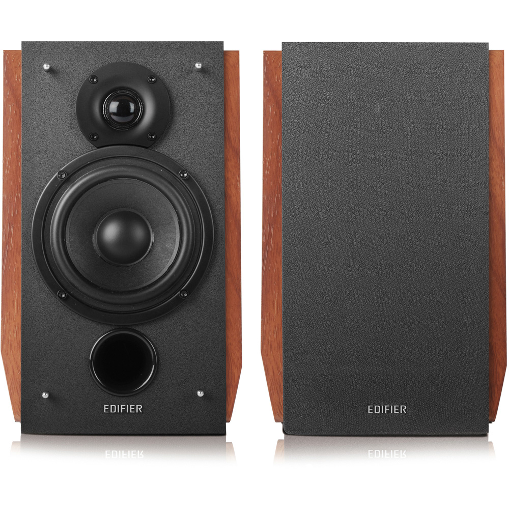 No wires required! Connect to devices using Bluetooth 5.0 technology. Enjoy listening from your phone, laptop, or tablet with a wireless connection, works with iOS, Android, Mac, or Windows devices. Soundfield Spatializer simulates a larger soundstage with the touch of a button. This unique feature creates wide-filed sound by optimizing each channel, sending out opposite signals to eliminate mutual interference and improve separation. 30W + 36W RMS undistorted power, 4-inch woofer, and 19mm silk dome tweeter, the Edifier R1700BTs active Bluetooth bookshelf speakers make even the hardly-noticeable sounds very clear. The DSP(Digital Signal Processing) and DRC (Dynamic Range Control) help to minimize distortion for improved audio even at low volume. When connected the sub-out automatically detects the subwoofer and activates the digital crossover. Dual RCA inputs allow you to connect to two devices at a time. Connect to your devices such as phone, PC, laptop, tablet, or gaming console with RCA to RCA audio cable, and 3.5 mm-RCA audio cable, eliminating the need to switch cables. Convenient dials on the side panel of the speaker allow you to adjust the bass, treble, and volume, press the volume dial to toggle between inputs. Adjust volume, mute/unmute, switch inputs, Bluetooth, select sound field extension, and line-in mode with the wireless remote, no need to leave the couch. These outstanding speakers are made from MDF wood with a walnut finish-vinyl, designed to prevent resonance. A great addition to your living room, office, or study. Features Bluetooth 5.0 with Qualcomm aptX high-quality transmission, Wooden enclosure isolates acoustic resonance and creates a classic look, Studio tuned sound from silk dome tweeter and 4-inch bass driver, Built-in Digital Signal Processing technology for precise crossover frequency control and audio management, 66 watts RMS total power for distortion-free listening, Dual RCA audio inputs, Side panel control and wireless remote included, Sub-out output works with an external subwoofer, Front-facing bass reflex port for punchy bass. Specifications: RMS: R/L(high) 15W+15W R/L(mid-low) 18W+18W, Driver Unit: F19mm tweeter unit + 4 inches woofer, Bluetooth: QCC3031/V5.0, Signal Noise Ratio: =85dBA, Input Sensitivity: LINE IN 1: 700±50mV, LINE IN 2: 550±50mV, Bluetooth: 400±50mV, Frequency response: 52Hz-20KHz, Input interface: LINE IN 1, LINE IN 2, Bluetooth, Speaker Dimensions: 256mm x 154 mm x 214mm.