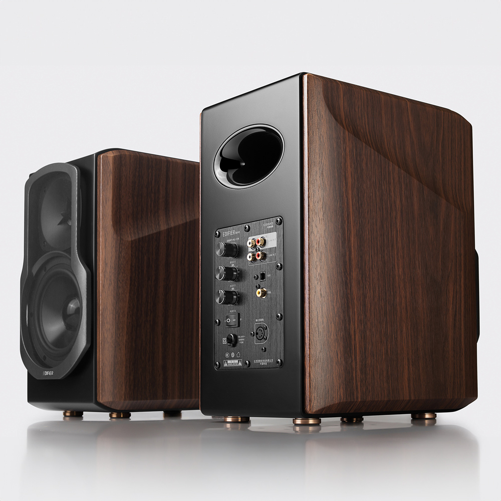 The S2000MKIII features two professional digital processing DSP chips to independently manage the electronic frequency division and dynamic management of the high-pitched and medium-bass channels, to precisely control the frequency distribution and fully release the characteristic advantages of the high-pitched and low-pitched units. Edifier's active speakers allow for hooking up multiple devices to the same speaker. In addition to Bluetooth connection, we also have wired digital input plus wired analogue input to permit interfacing to multiple devices such as TV sets, TV boxes, Blu-ray players, game consoles, CD/DVD players, smartphones, computers, tablets, and other devices. Swap between four EQ pre-set modes (Monitor, Dynamic, Classical, and Vocal) with the press of a button. These four sound modes will highlight distinctive tones in varying genres of music and audio. The treble, bass, and volume are individually adjustable. 50-level high-precision adjustment of the master volume, and smart start-up volume protects both your hearing and the speaker from harm. The speaker casing is made out of a wood veneer while the knobs are made from metal and have a professional-grade feel. Display the selected input status of the speaker (source, sound effect modes, volume) with a clear OLED LCD screen, all you need to do is take a look at the LCD screen, and you'll know exactly which input you are on. Equipped with a remote control for your convenience. Now you can adjust the volume, switch sound source, select mode, and power on/off the speaker wirelessly, freeing you from the hassle of the constant press of the speaker's buttons. Features Planar diaphragm tweeters, Electronic crossovers and dynamic control based on dual advanced DSP chips, Bluetooth V5.0 with Qualcomm aptX HD decoding, 5 ½" aluminium diaphragm drivers, PVC side panels with matte black finish, High-efficiency Class-D digital power amplification, Listening pre-sets: Monitor, Dynamic, Classical, and Vocal, OLED LCD screen display source, volume, sound effects modes, Digital audio signal with a sample rate up to 24BIT/192KHZ, IR remote control. Specifications: Total power output: L/R (treble): 15W+15W RMS L/R (mid-range bass): 50W + 50W RMS, Noise level: =25dB(A), Signal to noise ratio: =90dB(A), Input sensitivity: Line 1 input: 800±50mV, Line 2 input: 600±50mV Bluetooth input: 450±50mFFs Optical/Coaxial input: 350±50mFFs, Frequency Response: 45Hz~40KHz, Speaker Dimensions: 198 x 276 x 342.