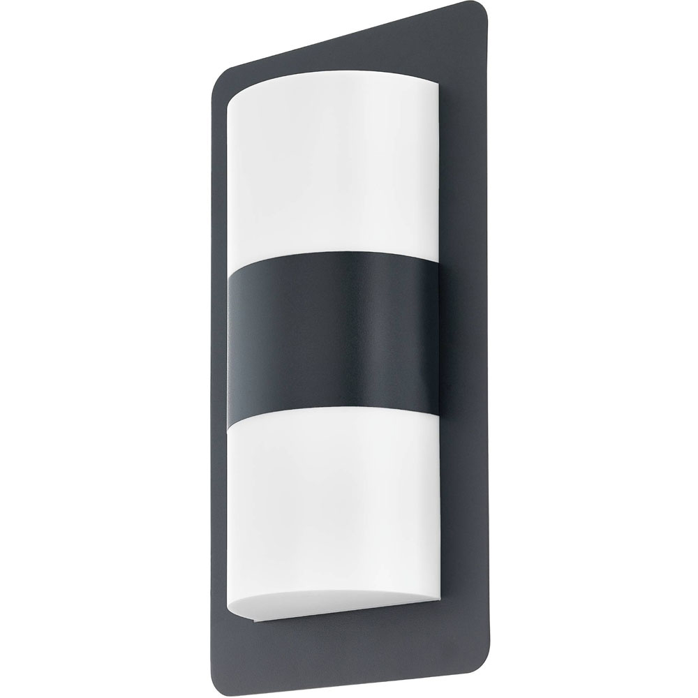 Add a touch of elegance with this EGLO Cistierna 2 Light Exterior Wall Light. The modern wall lamp features a rectangular base in anthracite zinc-plated steel with a rounded white plastic diffuser and two light sources that emit light upwards and downwards. With IP44 protection against spray water, the sleek and contemporary wall light is a perfect choice for exterior lighting and would complement a variety of gardens. The product requires two E27 lightbulbs, which are not included.