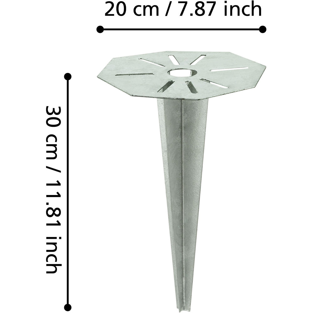 The Cuba ground spike is made from zinc-plated steel and is an accessory suitable for outdoor lights with a minimum base diameter of 20cm. The ground spike enables you to insert or cement your exterior lights, such as bollard lights, pathway lights or post lights into the ground. Please note that the spike design is not produced to withstand direct impacts and should not be hammered into the ground. The CUBA can be inserted 30cm deep into the ground and has a cable feed in the centre. It is a practical accessory for your outdoor area, whether in the garden, on paths or driveways.