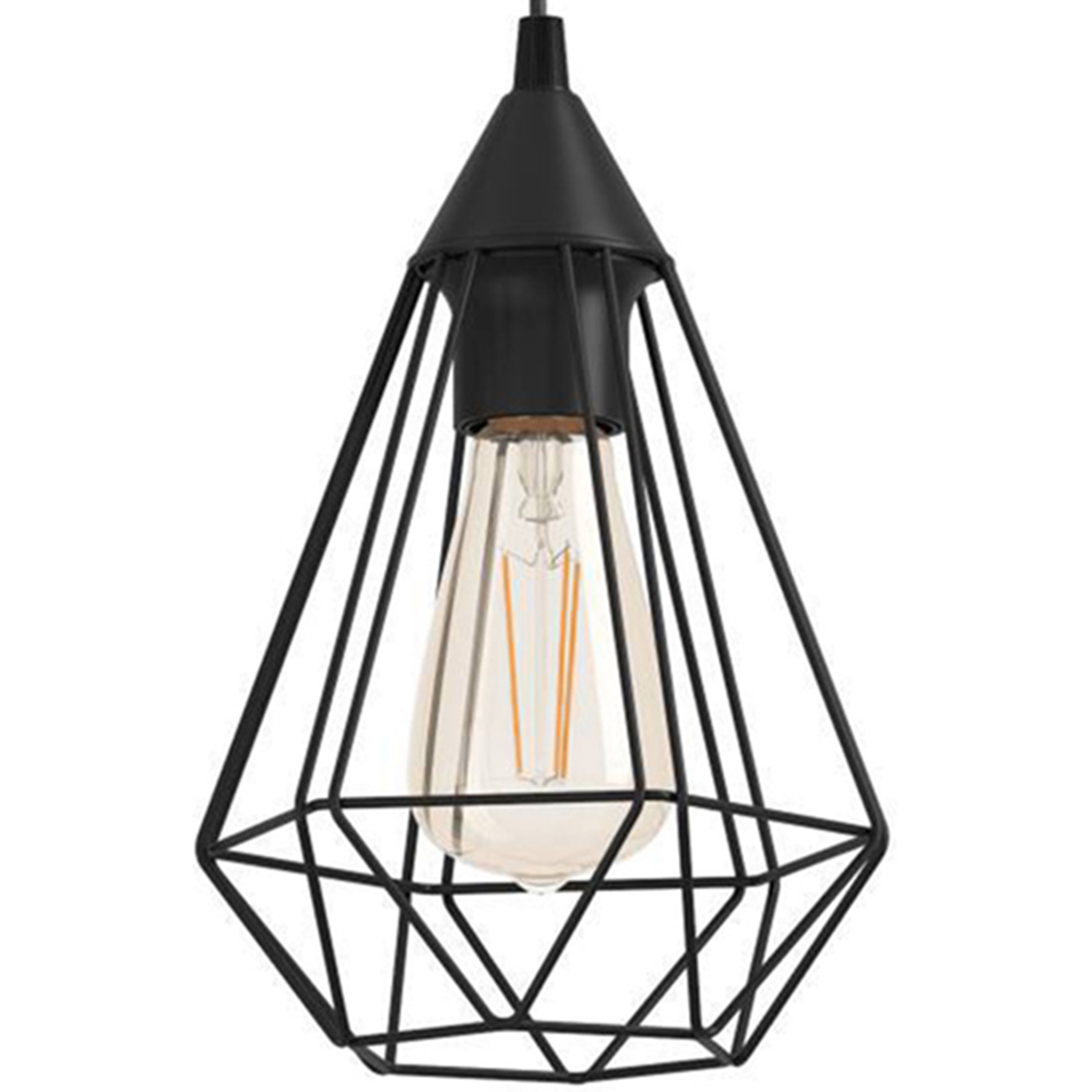 Add a simple yet striking industrial touch to your home with EGLO Tarbes Black Geo Pendant Light. Combining a black steel finish and a geometric caged design – the pendant light exudes vintage style with a contemporary twist. The pendant complements a larger retro-style lightbulb due to its visible lightbulb style. It is a single pendant that requires a 1 x E27 lightbulb, which is not included. Please click here to find our range of lightbulbs.