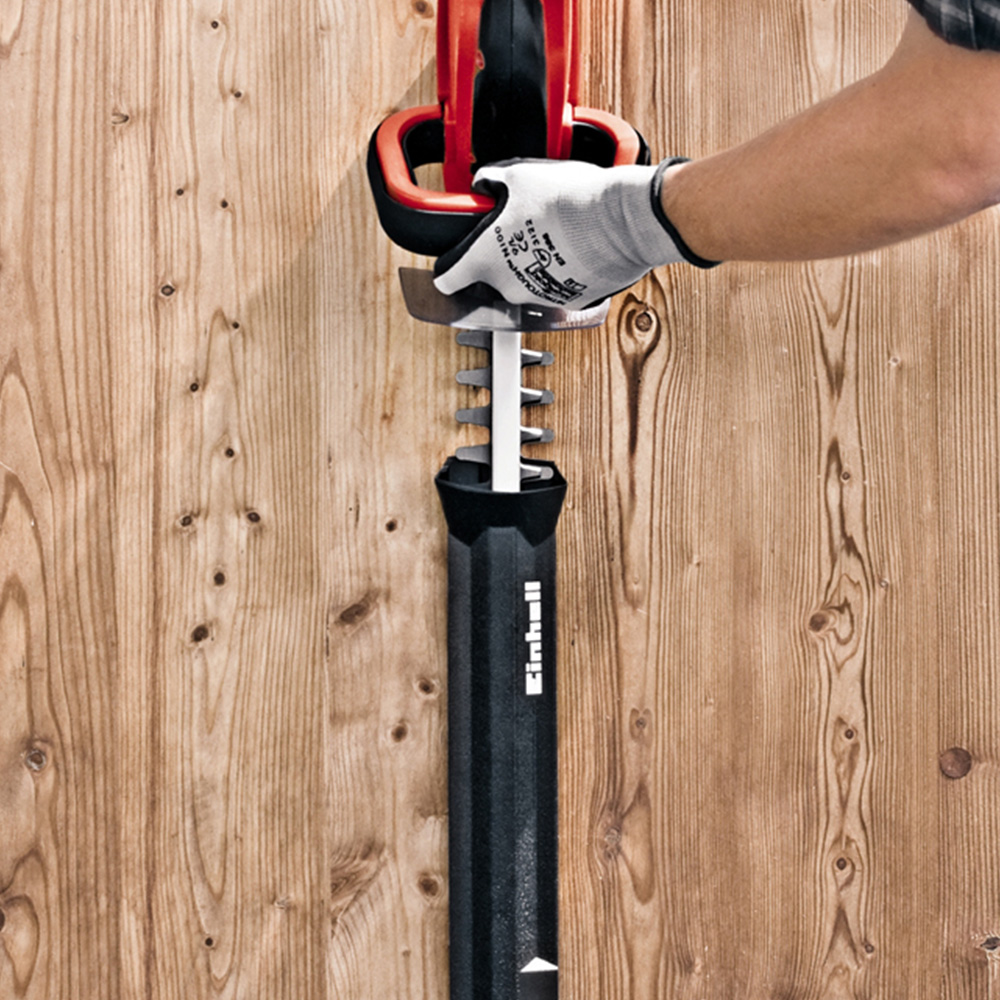 The GC-CH 1855/1 Li cordless hedge trimmer is a very efficient tool which provides good service for the trimming of hedges, shrubs and bushes on large grounds and allotments where there is no connection to the electric power grid. For a long service life, the gearing is made of metal, for clean-cutting results the blades are made of laser-cut and diamond-ground steel.