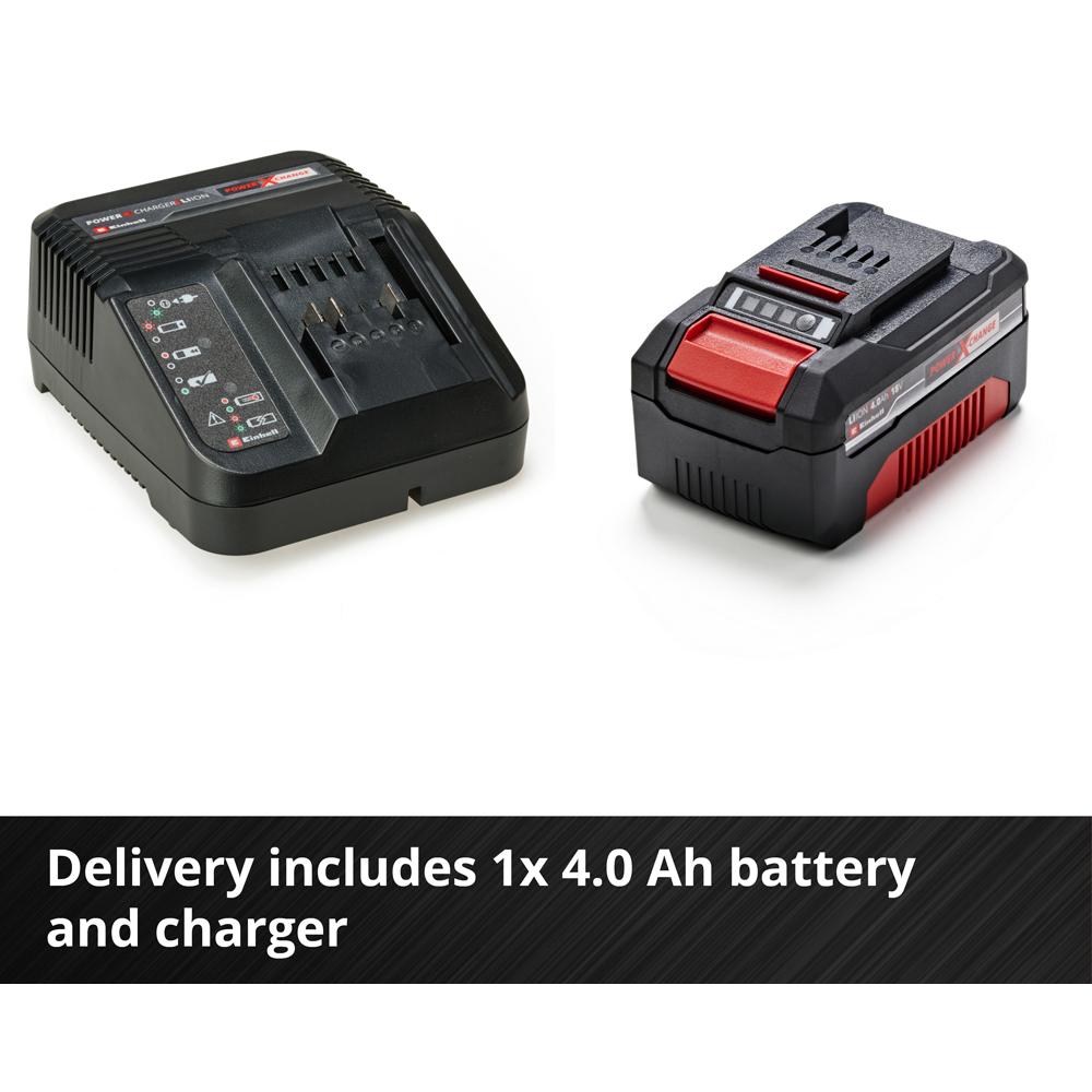 The Einhell GE-CM 18/33 Li (1x4.0Ah) cordless lawn mower is a member of the Power X-Change family and is recommended for lawns of 200 m². The high-wheeler is driven by an Einhell brushless motor and comes with a five-position central cutting height adjustment, a folding height-adjustable long handle with two settings and a grass box with a level indicator. The mower is equipped with a high-quality, impact-resistant plastic housing and an integrated carry handle. A 4.0 Ah rechargeable battery with LED level indicator suitable for all devices in the system series and a charger are included in the scope of delivery.
