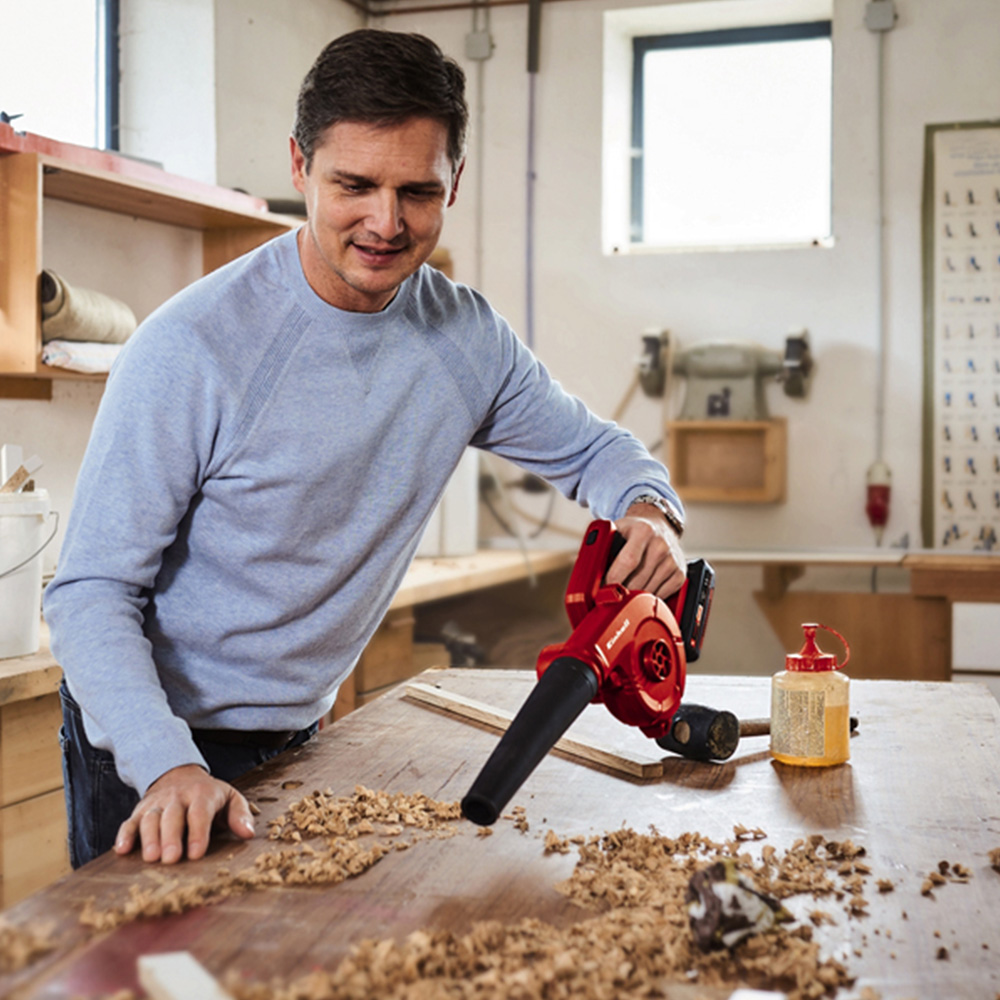 The Einhell cordless blower TE-CB 18/180 Li-Solo is versatile on the construction site and in the workshop. As a member of the Power X-Change family, the cordless blower offers power and flexibility: Batteries in the Power X-Change series are infinitely combinable. Tripping hazards caused by electric cables are a thing of the past. A powerful airflow of up to 180 km/h blows away disruptive dust and chips. Three different inflation adapters allow for a wide range of applications. Softgrip ensures pleasant operation. The two speed levels ensure application-oriented work. Delivery does not include a battery or charger. These are available separately.
