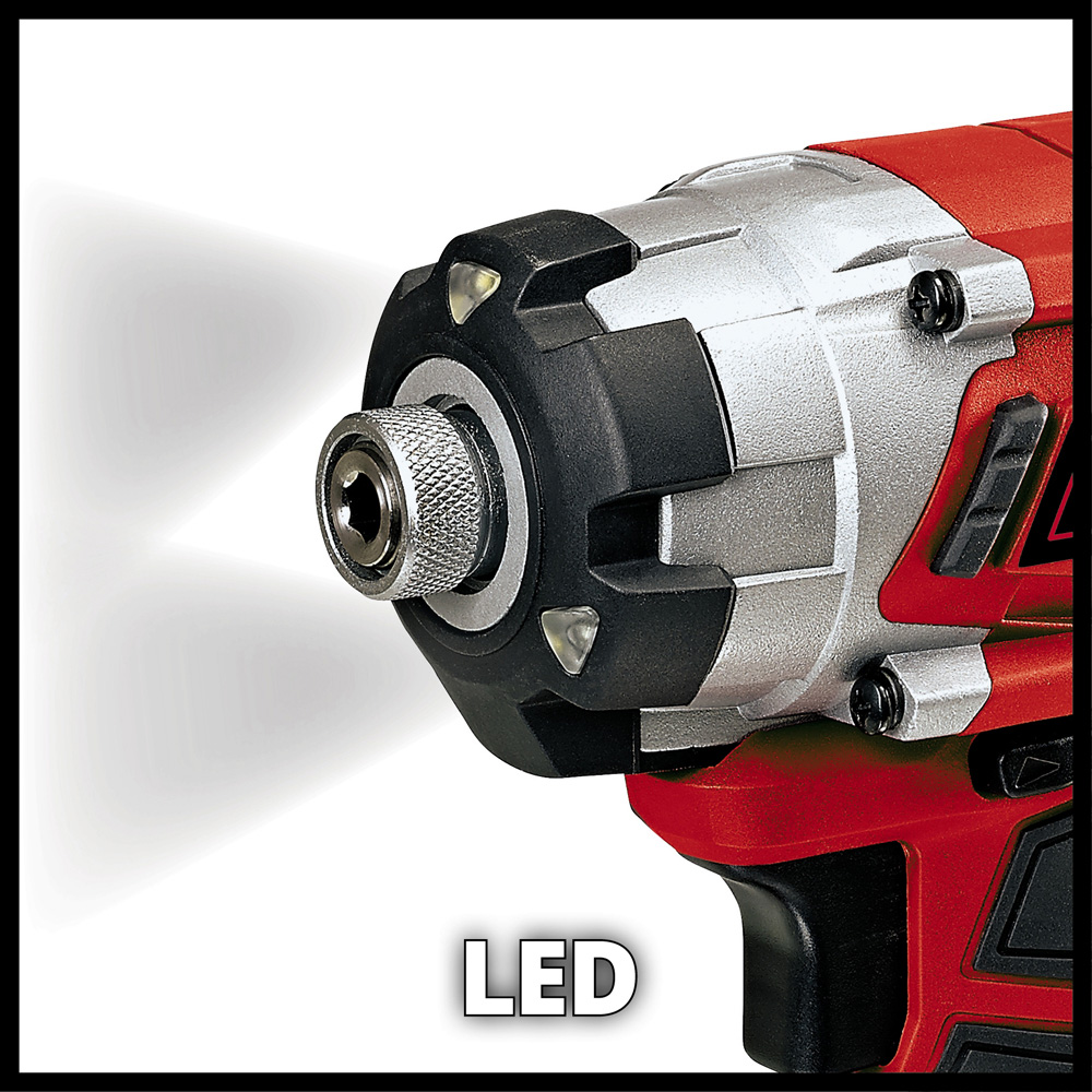 With 140 Nm the Einhell TE-CI 18/1 Li-solo cordless impact driver effortlessly drives in large, long screws, and also helps reduce physical strain thanks to its reverse torque. Thanks to its short, lightweight design and ergonomic Softgrip surfaces, tireless working is assured. The cordless impact driver is equipped with a 6.35 mm (¼") Hexagon Fitting for optimum operation with impact-resistant bits. The electronic speed control is finely adjustable for delicate operation. For optimum illumination there are three power LEDs, the housing is protected by an alu housing and rubber supports, and there is a practical belt clip for safety. It is a member of the Power X-Change family, so all system batteries can be used.