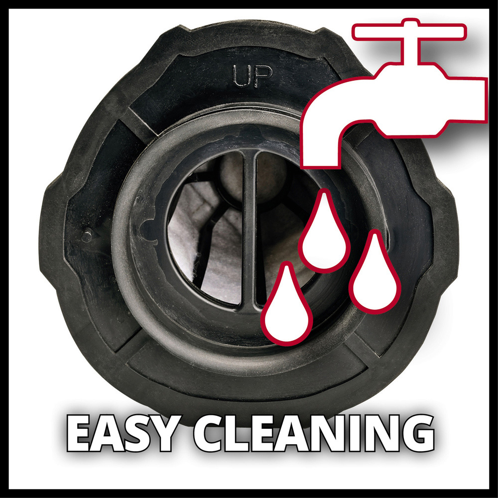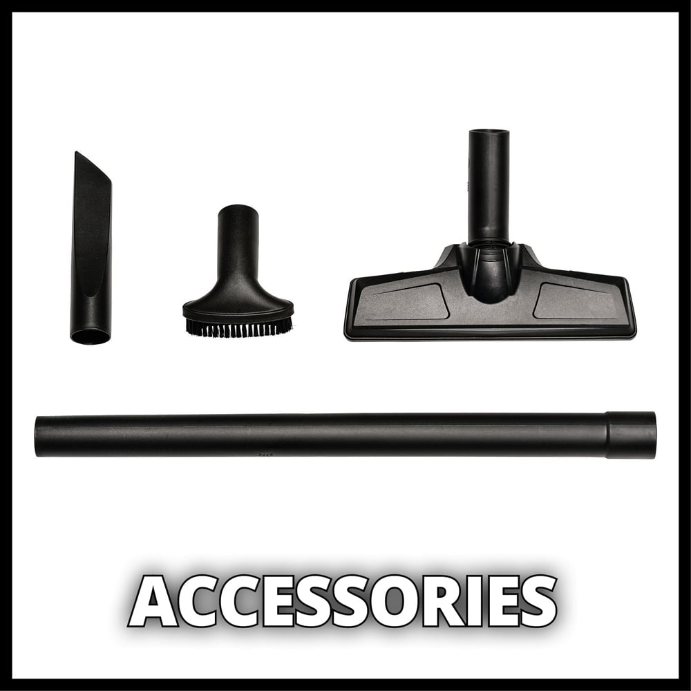 The Einhell TE-VC 18 Li-Solo cordless handheld vacuum cleaner is a convenient powerhouse from the Power X-Change family. The same rechargeable battery can be used in all PXC devices. Every surface and crevice can be thoroughly cleaned thanks to the individual nozzles. The floor nozzle is suitable for smooth surfaces. A second nozzle is provided for upholstery and fabrics. Hard-to-reach areas can be cleaned effortlessly using the crevice nozzle. Use the 46.5 cm extension tube when you want to clean the floor using the handheld vac as a floor vacuum cleaner. The dust container has a capacity of 540 ml. For space-saving storage, there is an integrated wall holder. The product is supplied without a battery and charger which are available separately.