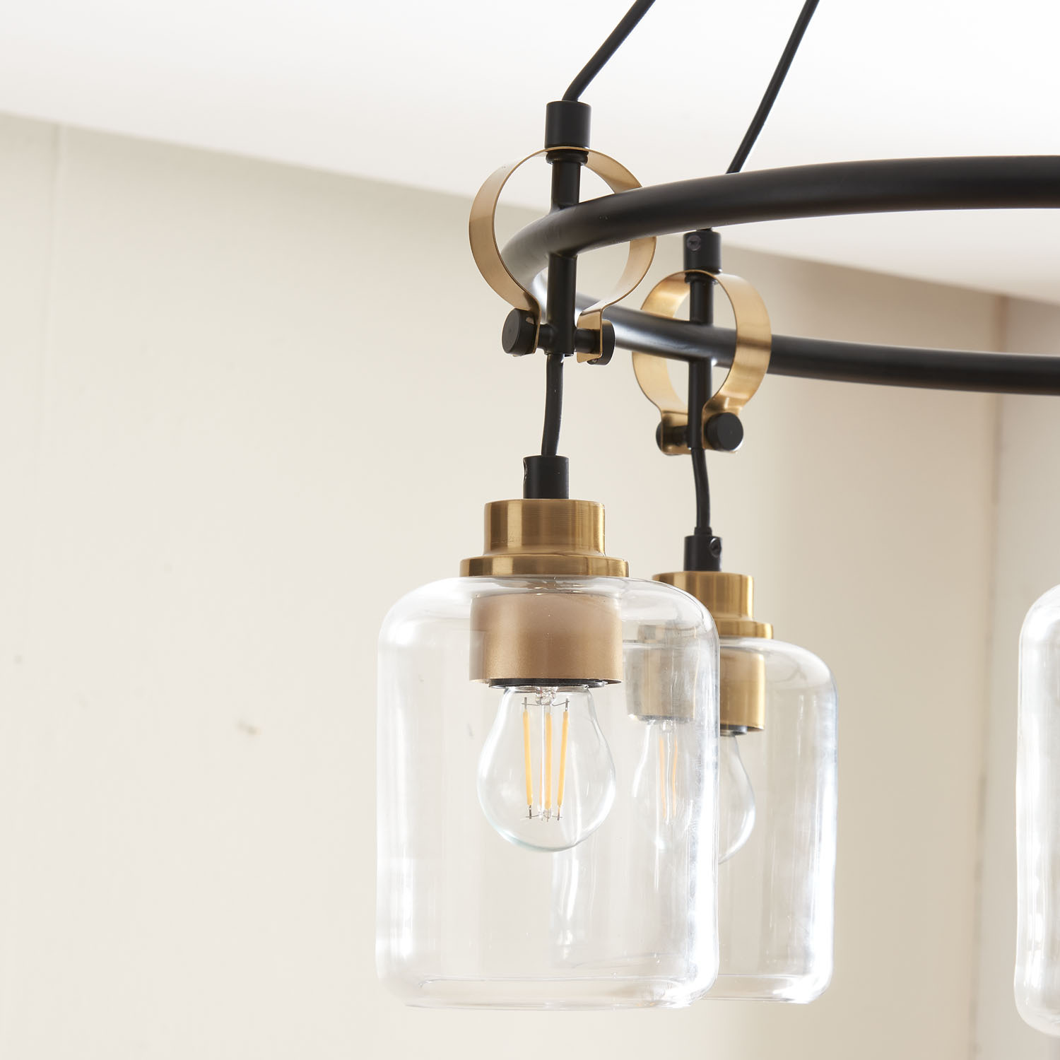 With a stylish black metal finish, this Elba 5 Light Ceiling Fitting illuminates rooms evenly to create a warm glow and welcoming ambience. Its industrial design will look fantastic in any room in your home, whilst its impressive and dramatic glass shades will allow light to flood your space and impress your guests. Please click here to find our range of lightbulbs.