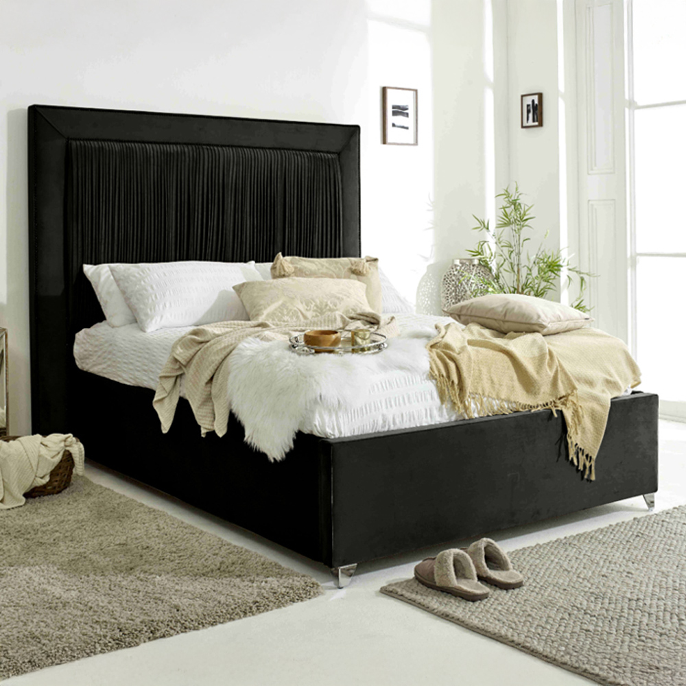 Introducing the Alexandra Black Plush Bed Frame, a masterpiece of elegance and comfort designed to elevate your bedroom experience. Crafted in Britain, this bed frame suits any decor. The meticulously pleated headboard adds a touch of sophistication and timeless charm, making it a focal point in any bedroom. Proudly made in Britain, each Alexandra Black Bed Frame is crafted with precision and care, ensuring the highest quality standards. Experience unparalleled comfort and style with the Alexandra Black Plush Bed Frame. Transform your sleep sanctuary and indulge in luxury today. Order now and elevate your bedroom.