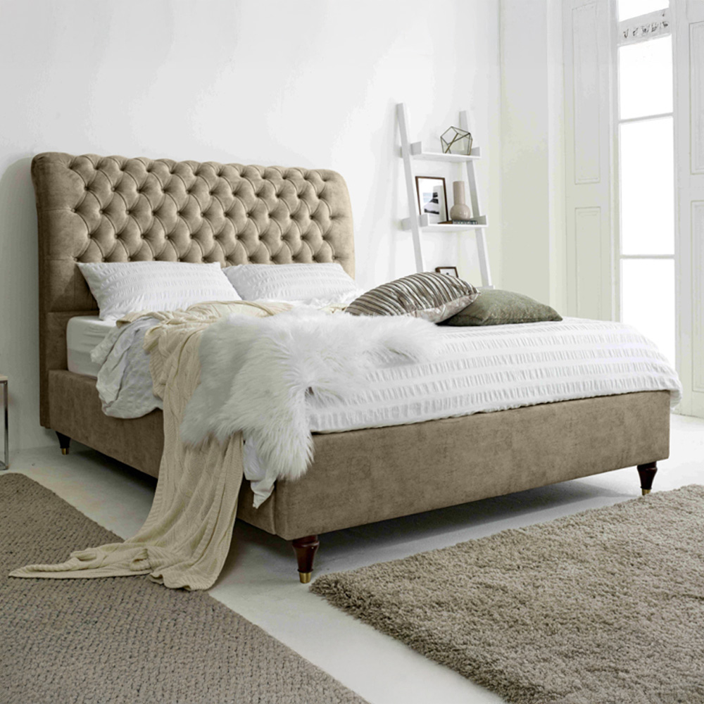 - Features a sleigh design headboard and matching buttons