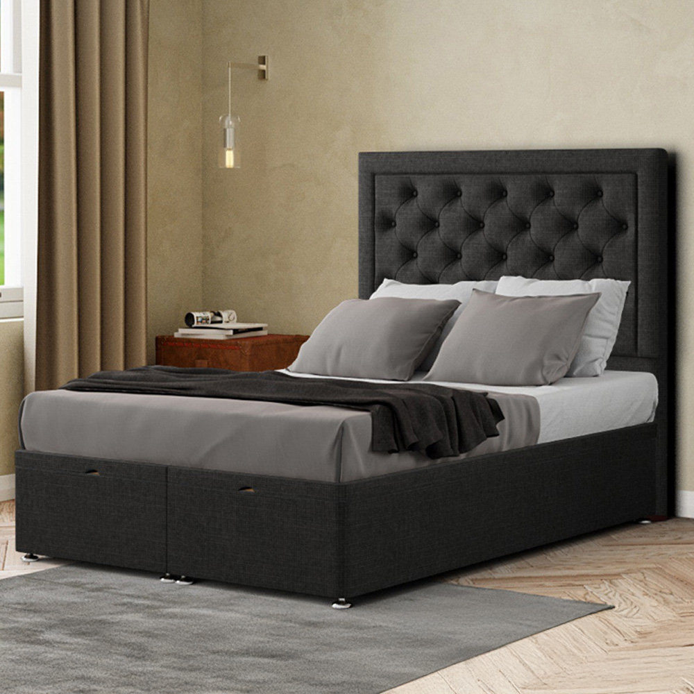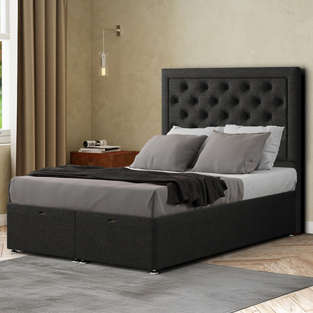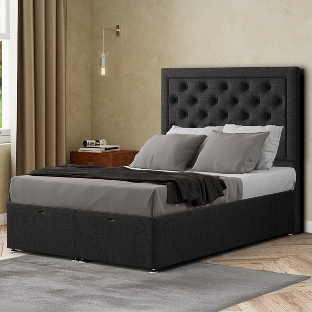 Introducing the Castle Gas Lift Ottoman End Lift Bed - Crafted with Precision in the UK for Uncompromising Quality! Impeccable Design: Elevate your bedroom with the floor-standing headboard adorned with matching buttons, exuding timeless elegance and sophistication. Customized Elegance: Express your unique style with a variety of colours and fabric choices, ensuring seamless integration with your bedroom decor. Available in All Sizes: Whether you need a single, small double, double, king, or super king, we have the perfect size to fit your space. Gas Lift Convenience: Effortlessly access the spacious storage area beneath the bed with the convenient gas lift mechanism, combining style with practicality. Premium Quality: Crafted with top-tier materials, this ottoman bed is built to last, providing you with years of dependable use. Mattress Not Included: Please note that the mattress is not included, allowing you to personalize your sleep experience. Elevate your bedroom with the Castle Gas Lift Ottoman End Lift Bed and experience the perfect blend of style, functionality, and quality. Create your own sanctuary of comfort—order yours today! Divan Ottoman End Lft, 54 inch Headboard - Does not include Mattress. Dimensions: 137 x 120 x 190cm.