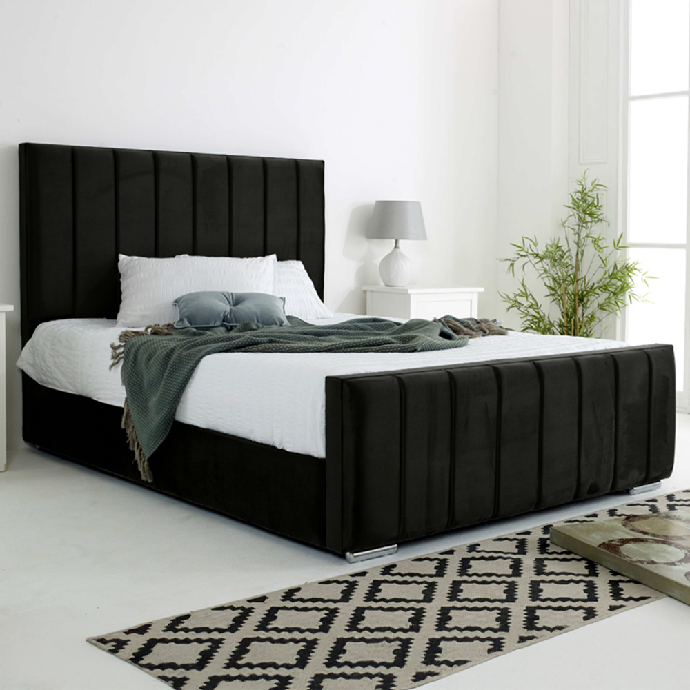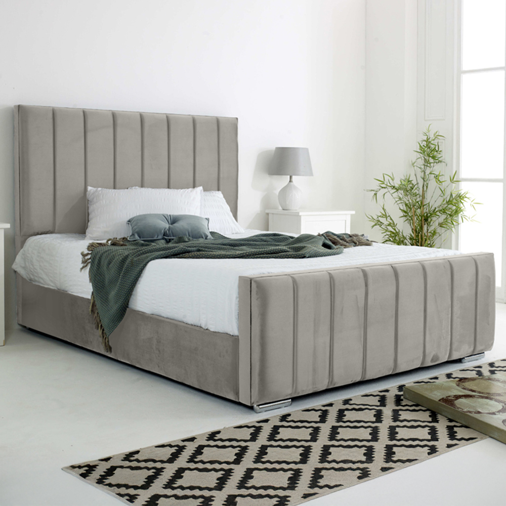 Introducing the Coraline Plush Fabric Bed Frame, where luxury meets comfort to transform your bedroom into a stylish retreat. Proudly made in Britain, this bed frame comes in a sumptuous plush velvet fabrics, designed to complement any interior. The lined headboard design adds a touch of modern elegance, making it a standout feature in any room. Crafted with precision and care, the Coraline Plush Fabric Bed Frame ensures the highest quality and comfort. Elevate your bedroom experience and indulge in the ultimate blend of style and sophistication.