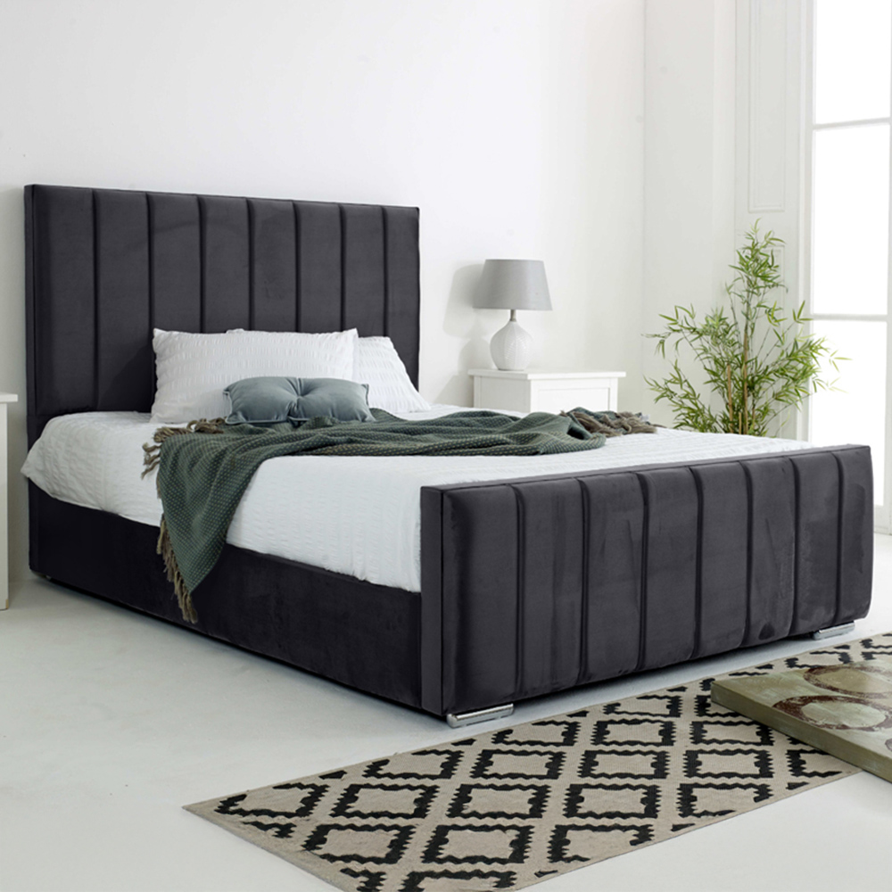 Introducing the Coraline Plush Fabric Bed Frame, where luxury meets comfort to transform your bedroom into a stylish retreat. Proudly made in Britain, this bed frame comes in a sumptuous plush velvet fabrics, designed to complement any interior. The lined headboard design adds a touch of modern elegance, making it a standout feature in any room. Crafted with precision and care, the Coraline Plush Fabric Bed Frame ensures the highest quality and comfort. Elevate your bedroom experience and indulge in the ultimate blend of style and sophistication.