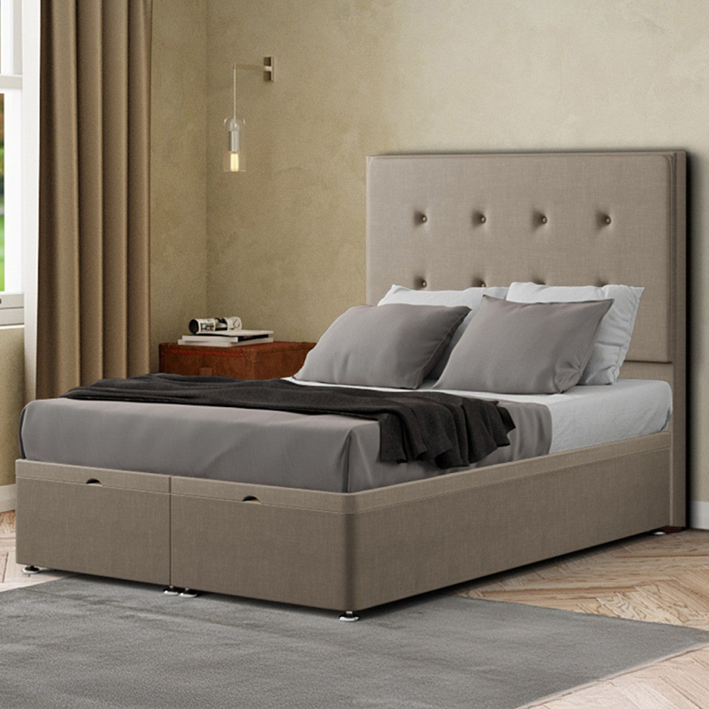 Introducing the Darlington Gas Lift Ottoman End Lift Bed - Crafted with Precision in the UK for Uncompromising Quality! Impeccable Design: Elevate your bedroom with the floor-standing headboard adorned with matching buttons, exuding timeless elegance and sophistication. Customised Elegance: Express your unique style with a variety of colours and fabric choices, ensuring seamless integration with your bedroom decor. Gas Lift Convenience: Effortlessly access the spacious storage area beneath the bed with the convenient gas lift mechanism, combining style with practicality. Premium Quality: Crafted with top-tier materials, this ottoman bed is built to last, providing you with years of dependable use. Mattress Not Included: Please note that the mattress is not included, allowing you to personalise your sleep experience. Elevate your bedroom with the Darlington Gas Lift Ottoman End Lift Bed and experience the perfect blend of style, functionality, and quality. Create your own sanctuary of comfort—order yours today!