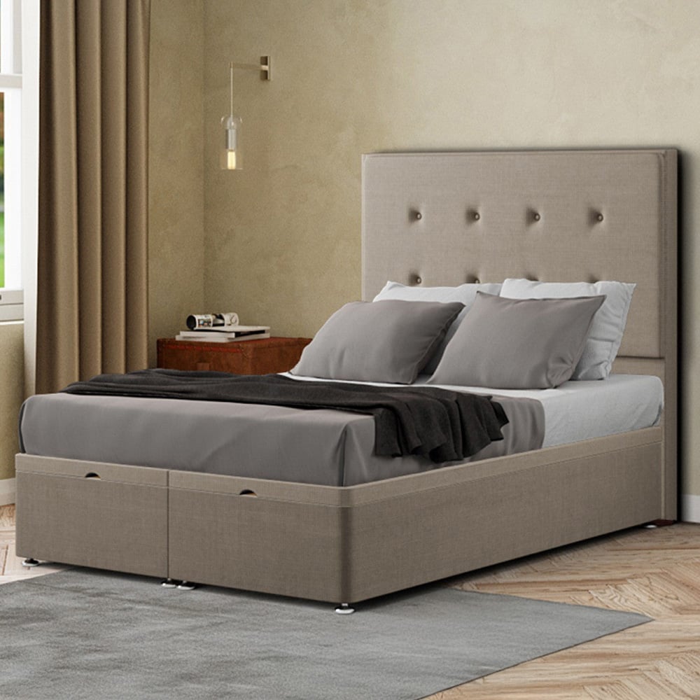 Introducing the Darlington Gas Lift Ottoman End Lift Bed - Crafted with Precision in the UK for Uncompromising Quality! Impeccable Design: Elevate your bedroom with the floor-standing headboard adorned with matching buttons, exuding timeless elegance and sophistication. Customised Elegance: Express your unique style with a variety of colours and fabric choices, ensuring seamless integration with your bedroom decor. Gas Lift Convenience: Effortlessly access the spacious storage area beneath the bed with the convenient gas lift mechanism, combining style with practicality. Premium Quality: Crafted with top-tier materials, this ottoman bed is built to last, providing you with years of dependable use. Mattress Not Included: Please note that the mattress is not included, allowing you to personalise your sleep experience. Elevate your bedroom with the Darlington Gas Lift Ottoman End Lift Bed and experience the perfect blend of style, functionality, and quality. Create your own sanctuary of comfort—order yours today!
