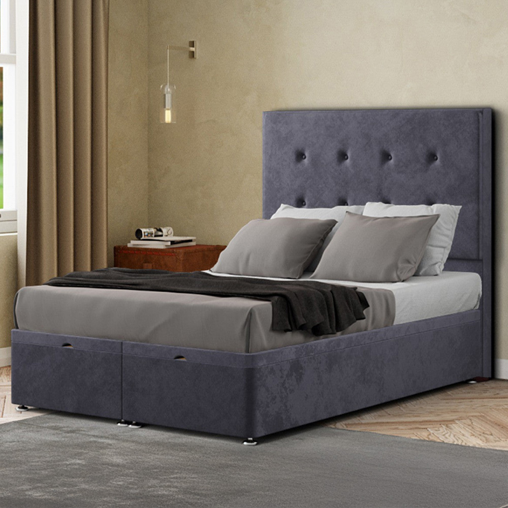 Introducing the Darlington Gas Lift Ottoman End Lift Bed - Crafted with Precision in the UK for Uncompromising Quality! Impeccable Design: Elevate your bedroom with the floor-standing headboard adorned with matching buttons, exuding timeless elegance and sophistication. Customised Elegance: Express your unique style with a variety of colours and fabric choices, ensuring seamless integration with your bedroom decor. Gas Lift Convenience: Effortlessly access the spacious storage area beneath the bed with the convenient gas lift mechanism, combining style with practicality. Premium Quality: Crafted with top-tier materials, this ottoman bed is built to last, providing you with years of dependable use. Mattress Not Included: Please note that the mattress is not included, allowing you to personalise your sleep experience. Elevate your bedroom with the Darlington Gas Lift Ottoman End Lift Bed and experience the perfect blend of style, functionality, and quality. Create your own sanctuary of comfort—order yours today!