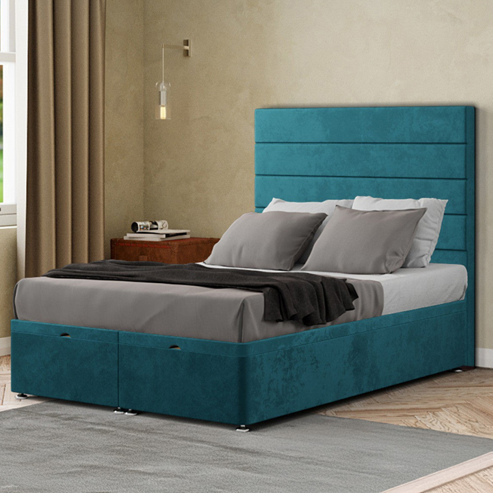 Introducing the George Gas Lift Ottoman End Lift Bed - Crafted with Precision in the UK for Uncompromising Quality! Elevate your bedroom with the floor-standing headboard, exuding timeless elegance and sophistication. Express your unique style with a variety of colours and fabric choices, ensuring seamless integration with your bedroom decor. Whether you need a single, small double, double, king, or Super King Size, we have the perfect size to fit your space. Effortlessly access the spacious storage area beneath the bed with the convenient gas lift mechanism, combining style with practicality. Crafted with top-tier materials, this ottoman bed is built to last, providing you with years of dependable use. Please note that the mattress is not included, allowing you to personalize your sleep experience.