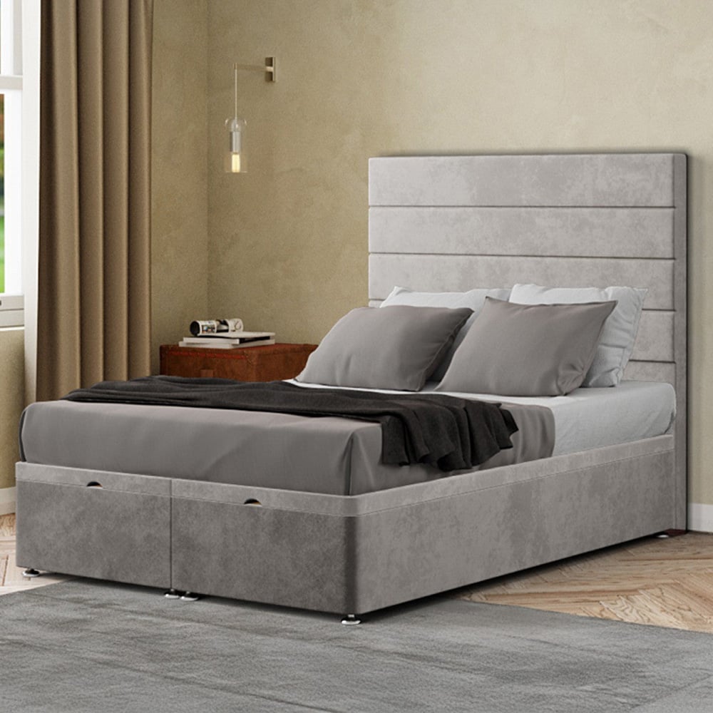 Eleganza George Small Double Blush Plush Ottoman Bed with Floor Standing Headboard