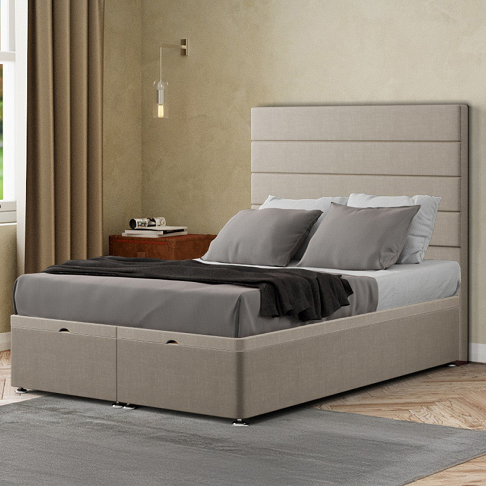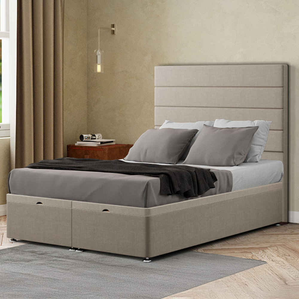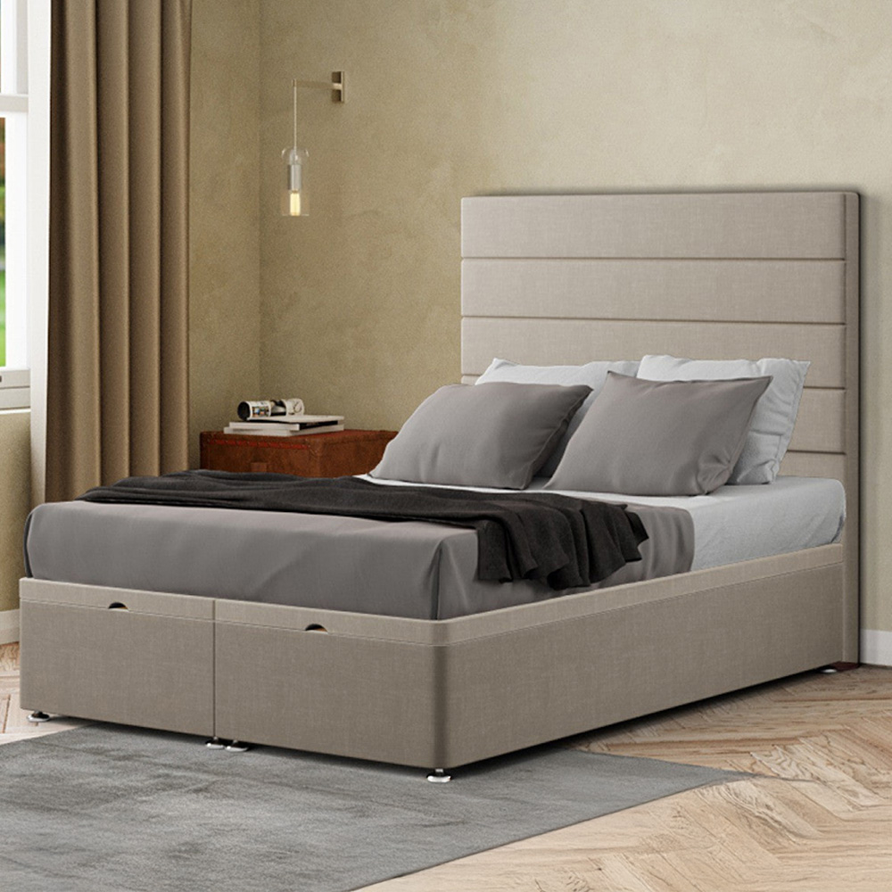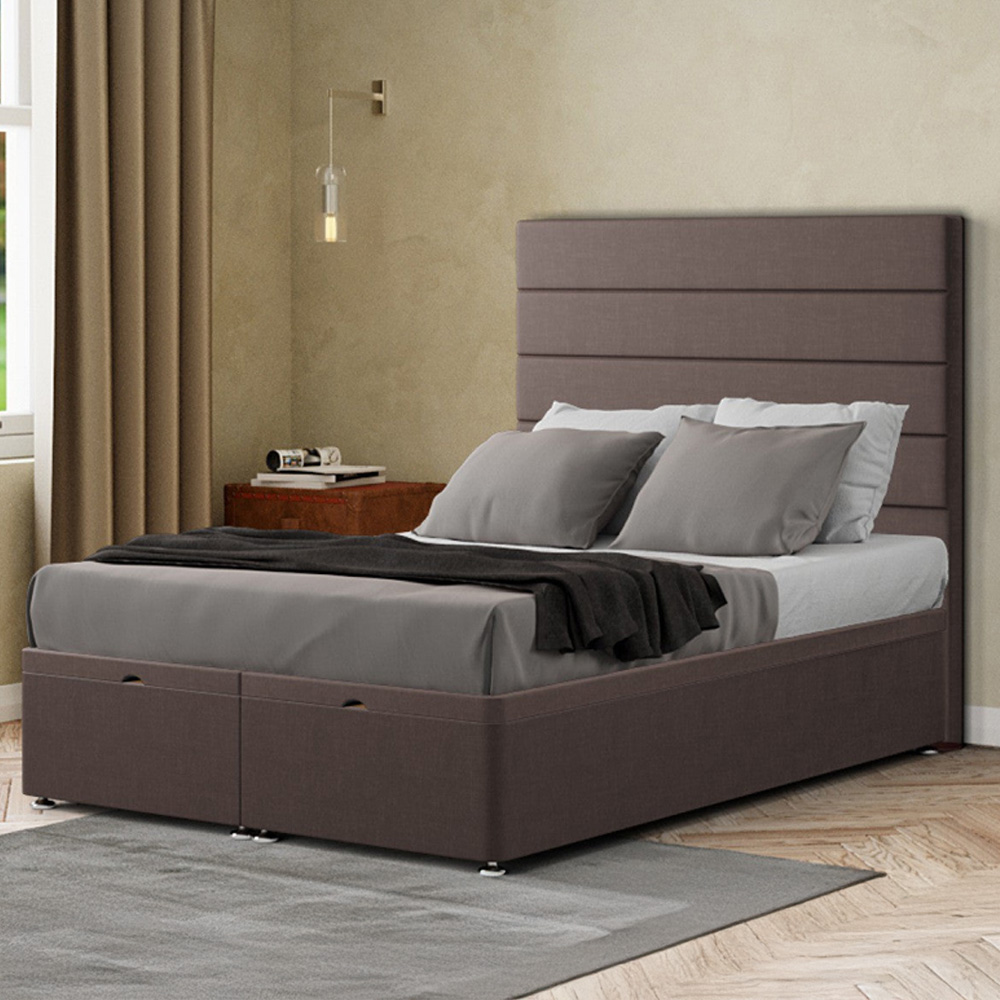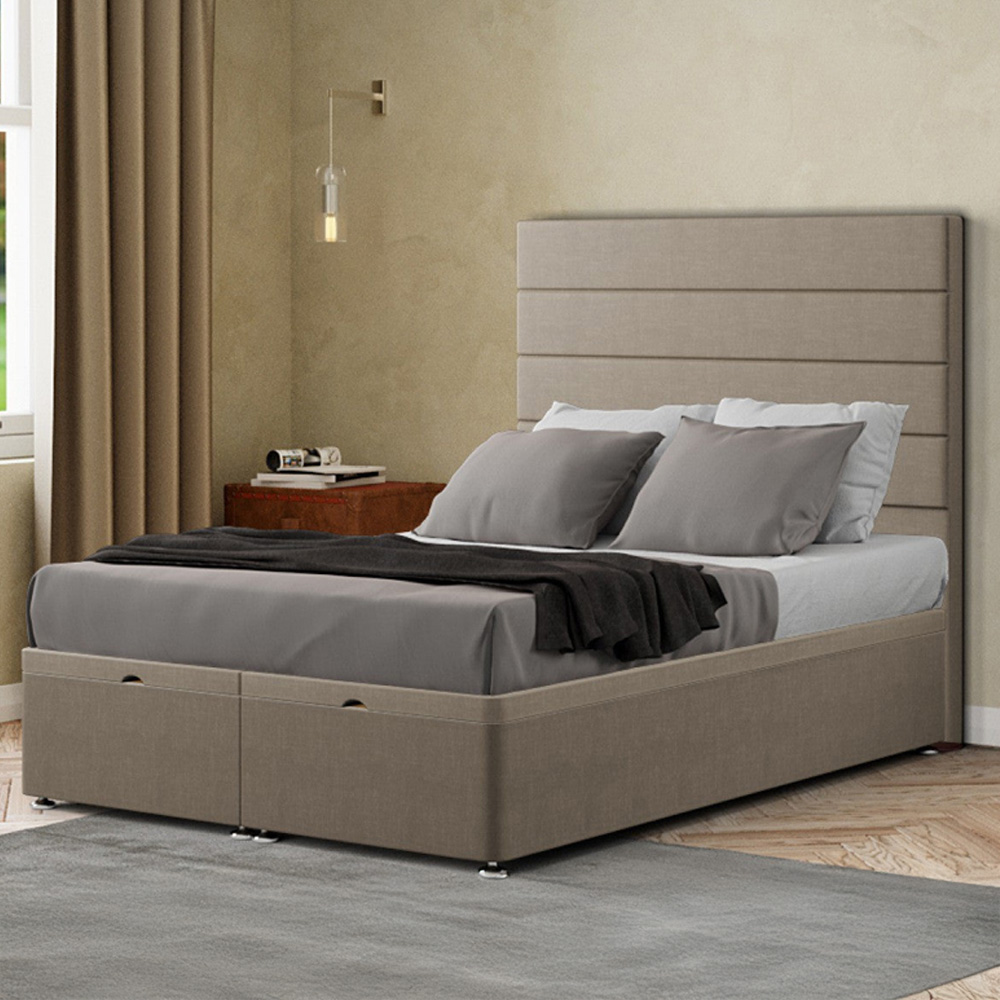 Introducing the George Gas Lift Ottoman End Lift Bed - Crafted with Precision in the UK for Uncompromising Quality! Elevate your bedroom with the floor-standing headboard, exuding timeless elegance and sophistication. Express your unique style with a variety of colours and fabric choices, ensuring seamless integration with your bedroom decor. Whether you need a single, small double, double, king, or Super King Size, we have the perfect size to fit your space. Effortlessly access the spacious storage area beneath the bed with the convenient gas lift mechanism, combining style with practicality. Crafted with top-tier materials, this ottoman bed is built to last, providing you with years of dependable use. Please note that the mattress is not included, allowing you to personalize your sleep experience.