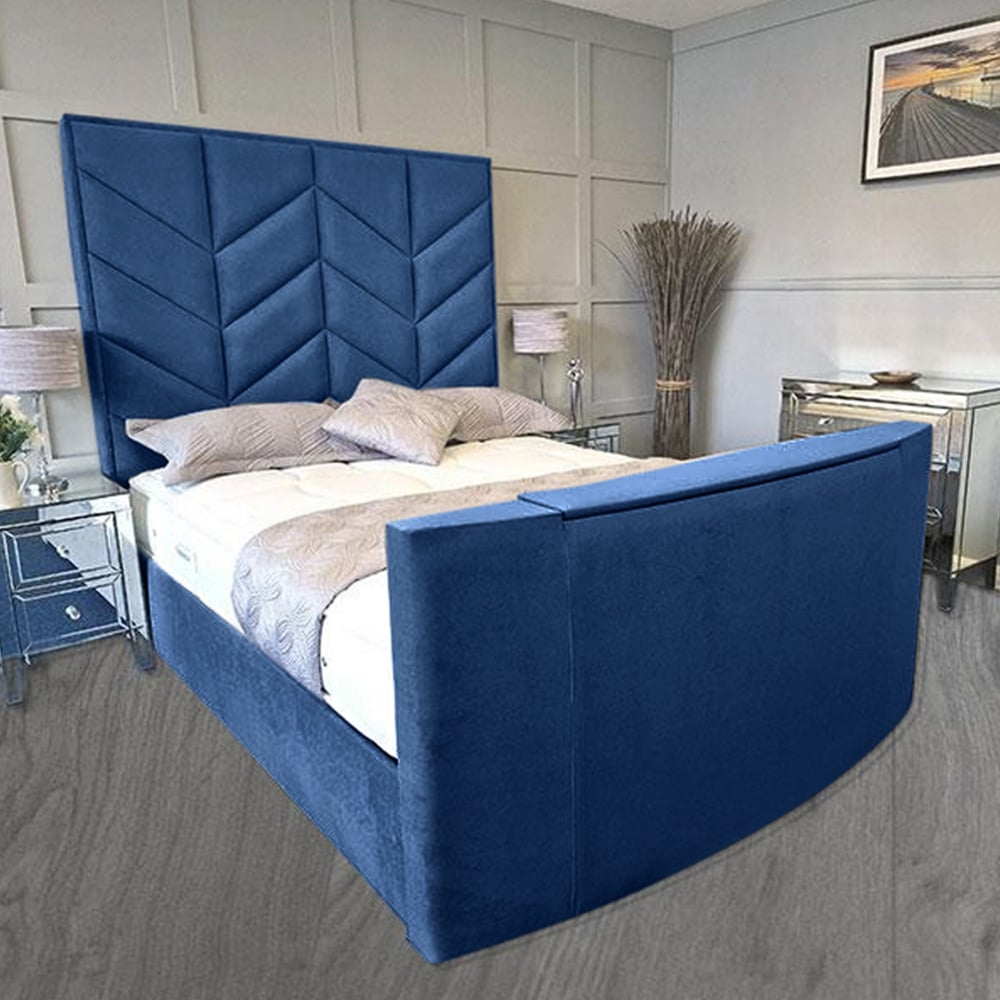 Eleganza Home Alino Super King Size Blue Plush Velvet TV Bed Frame