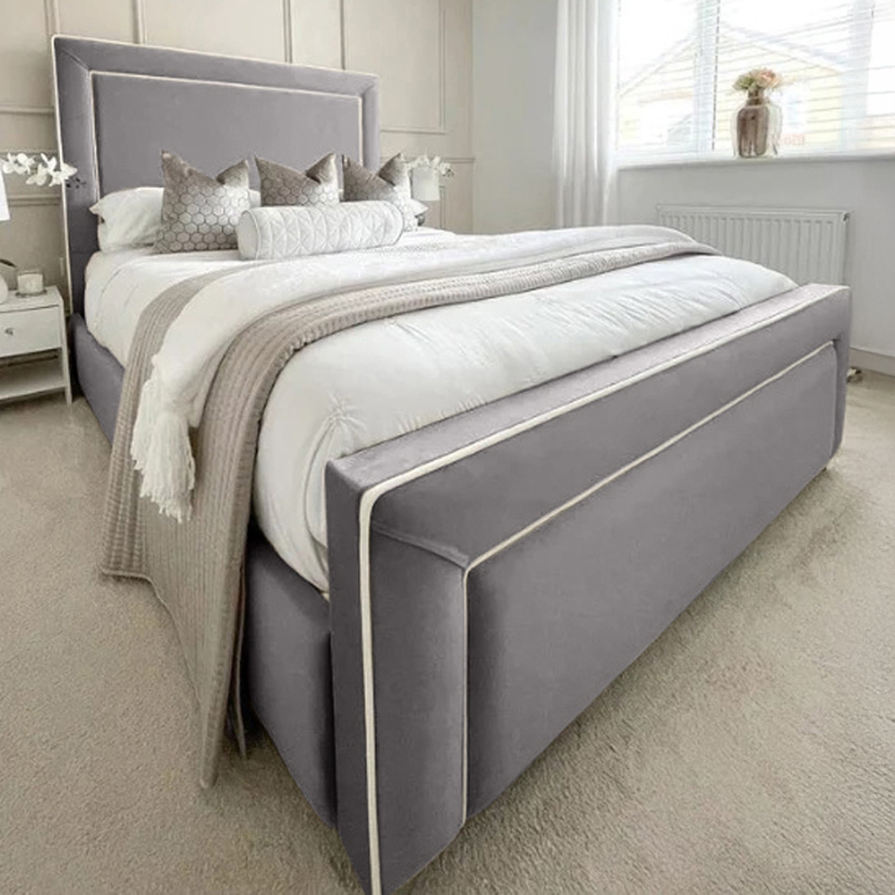 Eleganza Home Arring Super King Size Silver Plush Velvet Bed Frame with Headboard and Footboard