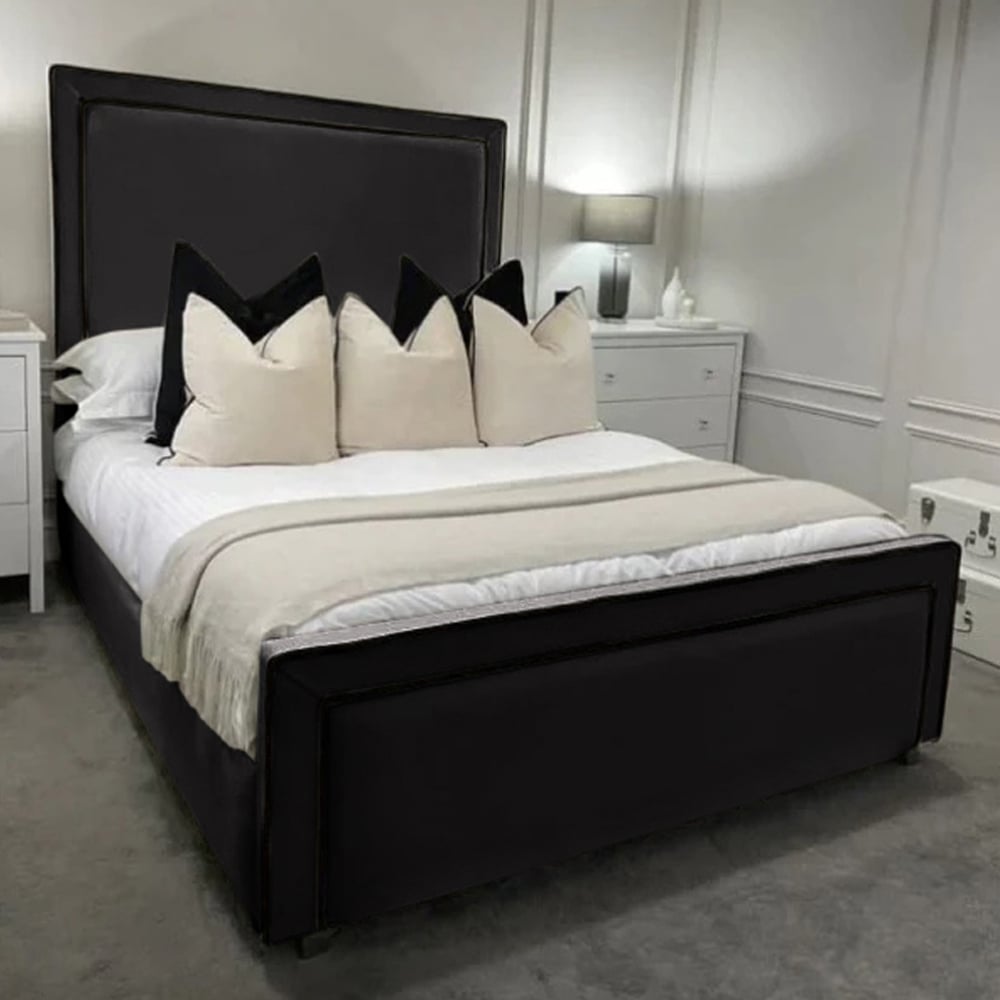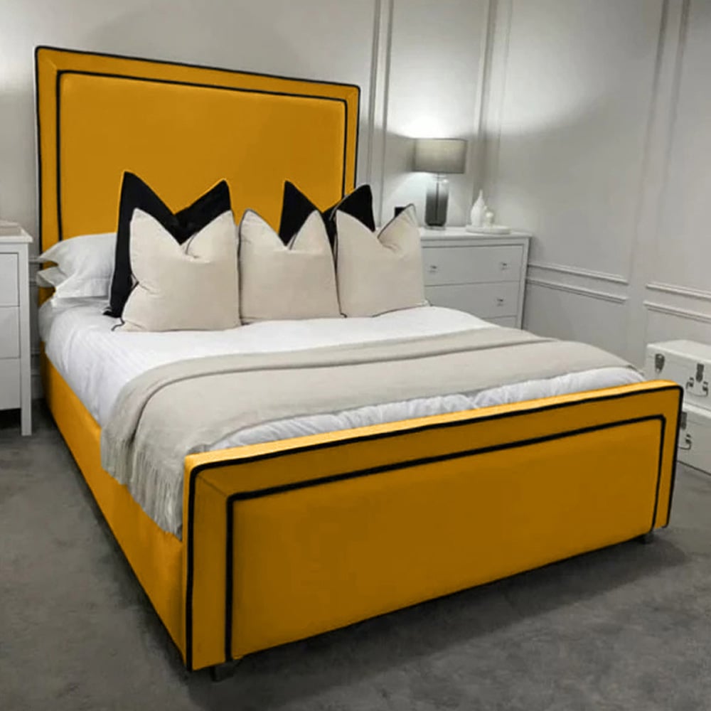 Introducing the Bianca Plush Velvet Bed Frame—a pinnacle of British craftsmanship and understated elegance. Immerse yourself in premium quality with plush velvet, featuring a clean and timeless design accentuated by sleek black piping along the headboard and footboard. Experience the perfect blend of style and comfort with this sophisticated piece. Crafted for the contemporary aesthetic, the Bianca Plush Velvet Bed Frame is a versatile addition to any bedroom. Elevate your living space with this effortlessly chic design—where simplicity meets premium quality in a harmonious embrace, creating a statement of refined style and comfort.