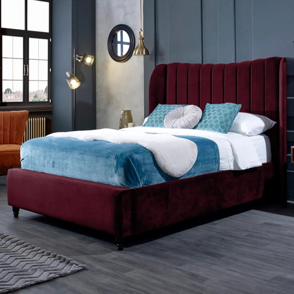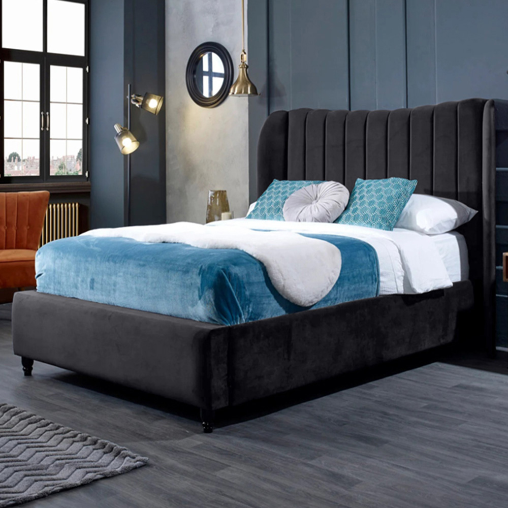 Introducing the Carli Plush Velvet Bed Frame—a masterpiece of British craftsmanship and timeless luxury. Immerse yourself in premium quality with plush velvet, featuring a regal winged headboard adorned with a distinguished lined design. Experience the perfect fusion of style and comfort with this elegant piece. Crafted for those with a discerning taste, the Carli Plush Velvet Bed Frame is a statement of refined elegance in any bedroom. Elevate your living space with this chic design, where premium quality meets classic design in a harmonious embrace, setting the stage for a truly luxurious sleep sanctuary.