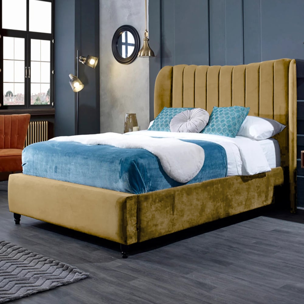 Introducing the Carli Plush Velvet Bed Frame—a masterpiece of British craftsmanship and timeless luxury. Immerse yourself in premium quality with plush velvet, featuring a regal winged headboard adorned with a distinguished lined design. Experience the perfect fusion of style and comfort with this elegant piece. Crafted for those with a discerning taste, the Carli Plush Velvet Bed Frame is a statement of refined elegance in any bedroom. Elevate your living space with this chic design, where premium quality meets classic design in a harmonious embrace, setting the stage for a truly luxurious sleep sanctuary.
