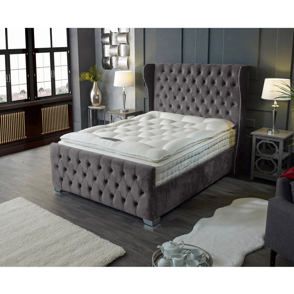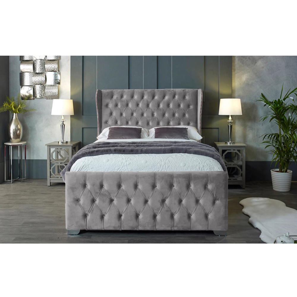 Eleganza Home Colleen Double Silver Plush Velvet Bed Frame with Chesterfield Headboard