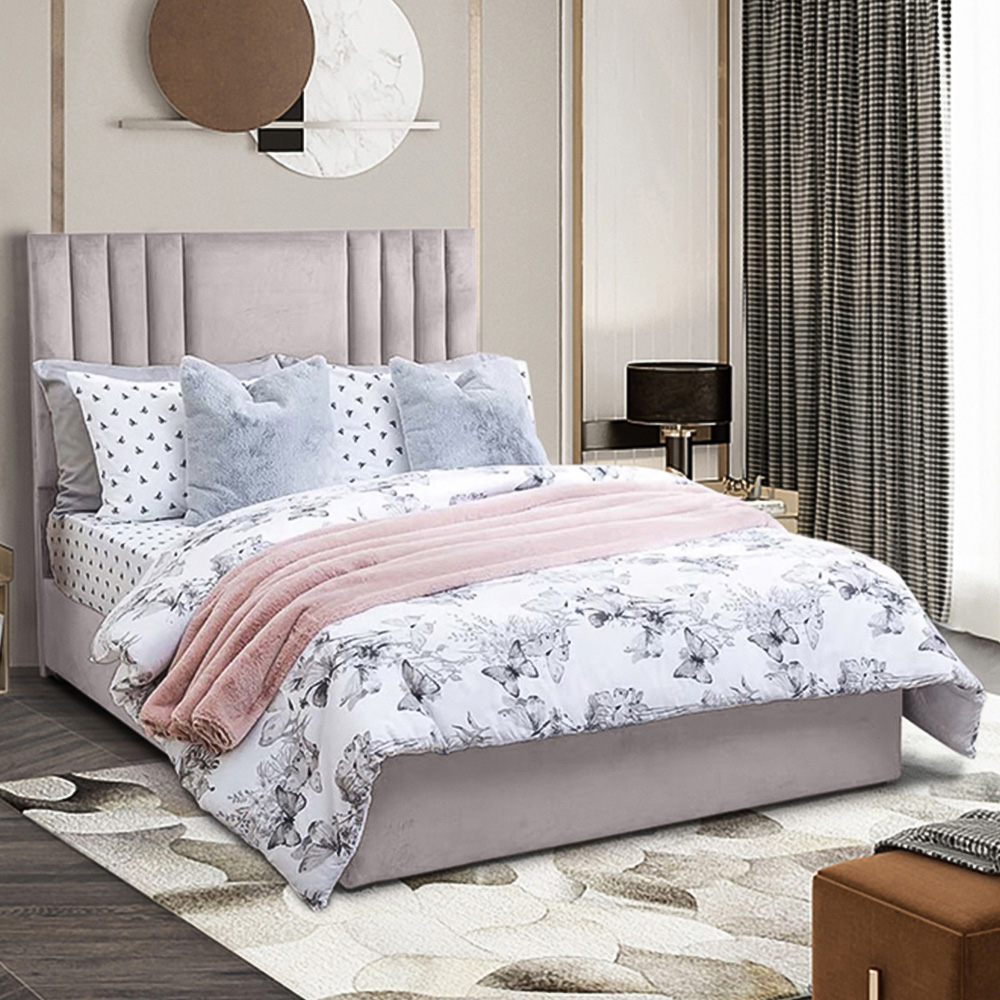 Introduce a regal touch to your bedroom with the Dreamer Divan Bed, featuring a plush silver headboard that stands at an impressive 54 inches. This super king size bed is not just a piece of furniture but a statement of luxury and comfort, meticulously handcrafted in the UK. The lined design of the headboard adds a modern twist, making it a perfect centrepiece for any decor. Whether you're aiming for a restful night's sleep or a stylish upgrade to your space, this bed delivers both with unmatched elegance.