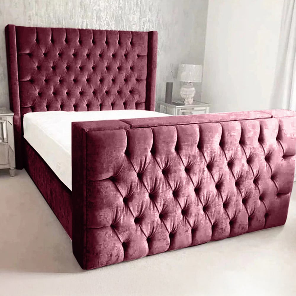 Introducing the Lokie Plush Velvet TV Bed Frame—a timeless blend of British craftsmanship and luxurious comfort. Immerse yourself in the classic elegance of plush velvet, adorned with a traditional chesterfield design and meticulously matched buttons, creating a bedroom centrepiece that exudes sophistication. Experience the perfect harmony of style and convenience with the built-in remote, effortlessly transforming your TV bed into a haven of relaxation. The Lokie invites you to customise your space, allowing you to indulge in personalised opulence. Designed for the modern connoisseur, the Lokie Plush Velvet TV Bed Frame accommodates screens from 40" to 75". Worried about compatibility? Rest easy! With VESA 600 x 400 or less mounting holes, this bed frame seamlessly marries timeless design with technological prowess, elevating your bedroom into a sanctuary of comfort and entertainment. Elevate your living space with Lokie—where premium quality meets classic charm.