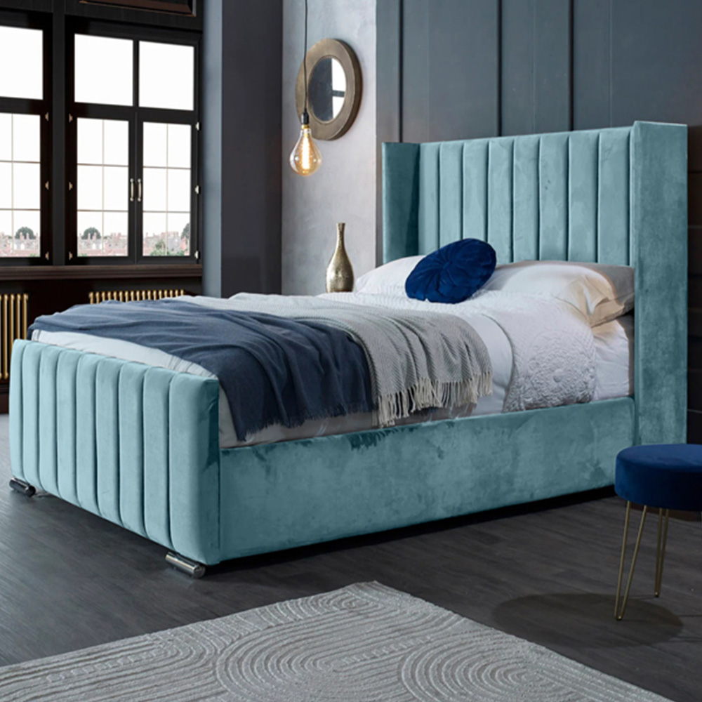 Eleganza Home Meriso Super King Size Duck Egg Plush Velvet Bed Frame with Winged Headboard
