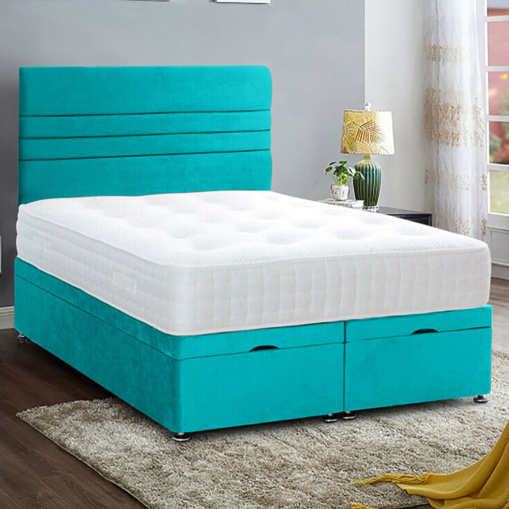 Eleganza Home Napster King Size Teal Plush Velvet Divan Ottoman Bed with Lined Headboard