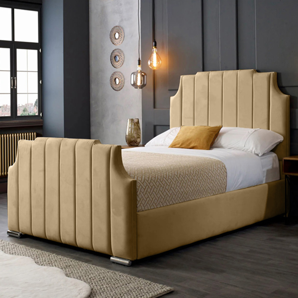 Introducing the Nelson Plush Velvet Bed Frame—a celebration of British craftsmanship and contemporary design. Immerse yourself in premium quality with plush velvet, featuring a sleek headboard adorned with a distinguished lined design, coupled with a unique step headboard and footboard design. Experience the perfect fusion of style and comfort with this modern masterpiece. The Nelson invites you to customise your space with a spectrum of colours, creating a bespoke retreat that exudes luxurious allure. Crafted for those who appreciate the extraordinary, the Nelson Plush Velvet Bed Frame is a statement of refined elegance in any bedroom. Elevate your living space with this chic design—where premium quality meets cutting-edge style in a harmonious embrace, setting the stage for a truly indulgent sleep sanctuary.