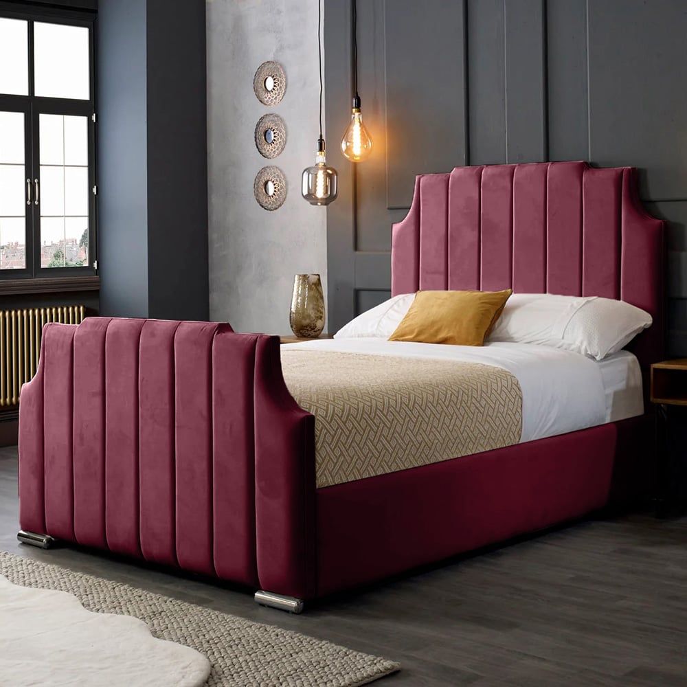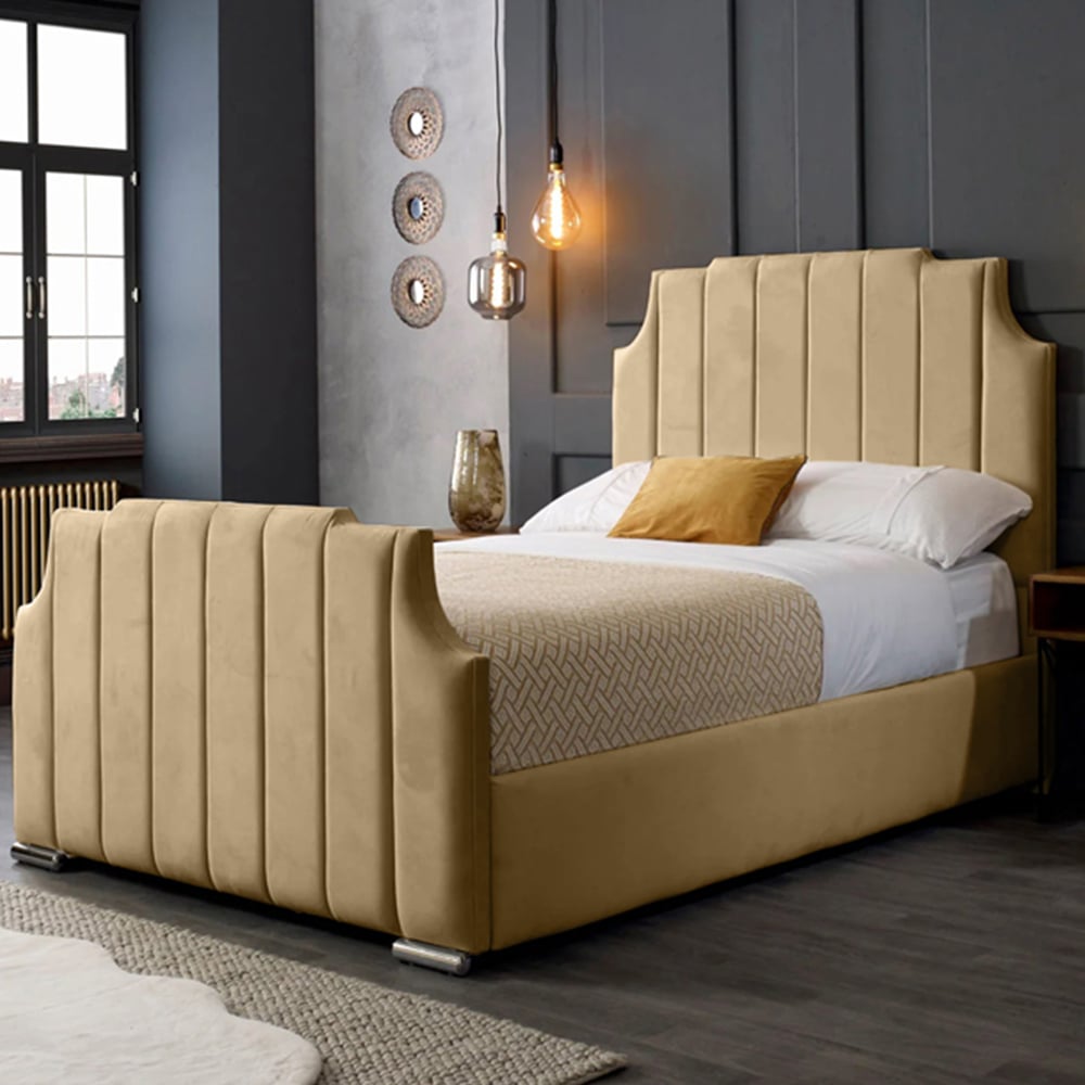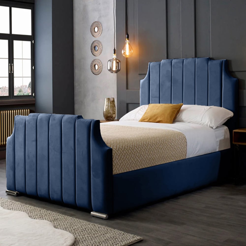 Introducing the Nelson Plush Velvet Bed Frame—a celebration of British craftsmanship and contemporary design. Immerse yourself in premium quality with plush velvet, featuring a sleek headboard adorned with a distinguished lined design, coupled with a unique step headboard and footboard design. Experience the perfect fusion of style and comfort with this modern masterpiece. The Nelson invites you to customise your space with a spectrum of colours, creating a bespoke retreat that exudes luxurious allure. Crafted for those who appreciate the extraordinary, the Nelson Plush Velvet Bed Frame is a statement of refined elegance in any bedroom. Elevate your living space with this chic design—where premium quality meets cutting-edge style in a harmonious embrace, setting the stage for a truly indulgent sleep sanctuary.