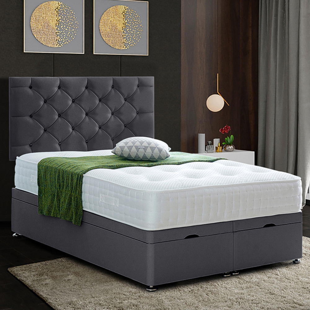 Elevate your sleeping experience with the Eleganza Home Resthaven Small Double Maroon Plush Velvet Divan Ottoman Bed with Headboard, a perfect blend of elegance and functionality. This bed features a luxurious 24 inch Chesterfield headboard and an ottoman base, both meticulously upholstered in plush velvet. The built-in storage within the ottoman base makes it an ideal choice for those looking to maximise space without compromising on style. This bed is designed to complement any bedroom decor while providing a touch of sophistication.