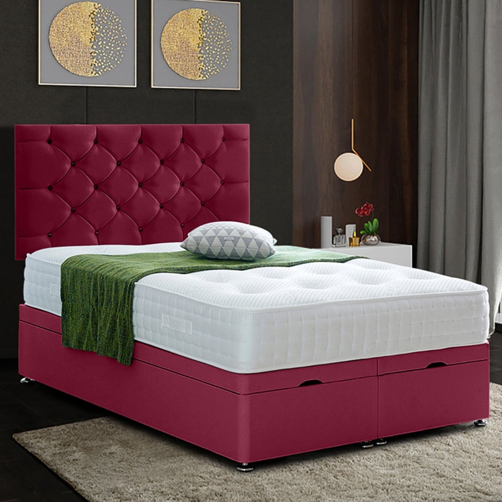 Eleganza Home Resthaven Small Double Maroon Plush Velvet Divan Ottoman Bed with Headboard