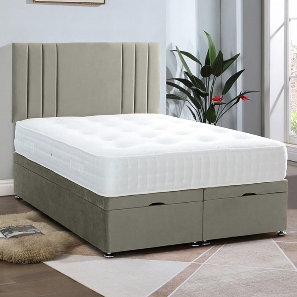 Experience unparalleled comfort and elegance with the Slumberlyn Divan Bed, a masterpiece that combines a chic Ottoman design with grey plush velvet fabrics. This double bed features a striking 54-inch headboard, adorned with an elegant lined pattern that adds a contemporary touch to any bedroom. The integrated ottoman storage cleverly maximises space, providing a neat solution to store away essentials. Wrapped in luxurious plush blush velvet, this bed not only offers a sumptuous feel but also enhances the room with its sophisticated aesthetic.